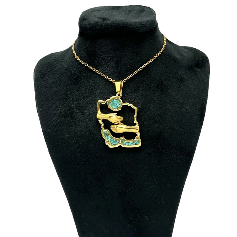گردنبند استیل گالری عزیزی مدل نقشه ایران در آغوش