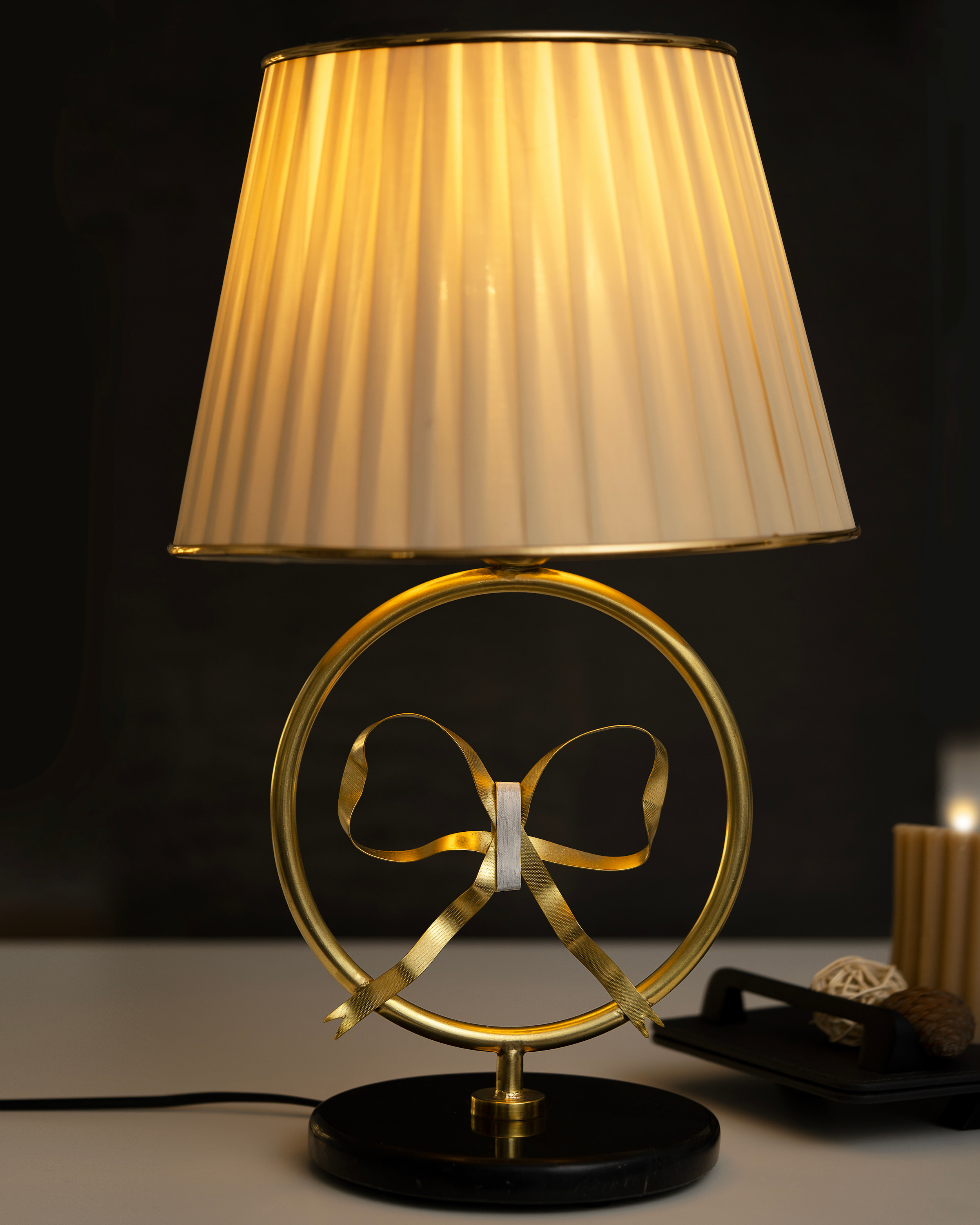 چراغ خواب رومیزی برنجی گالری عزیزی مدل پاپیون بزرگ