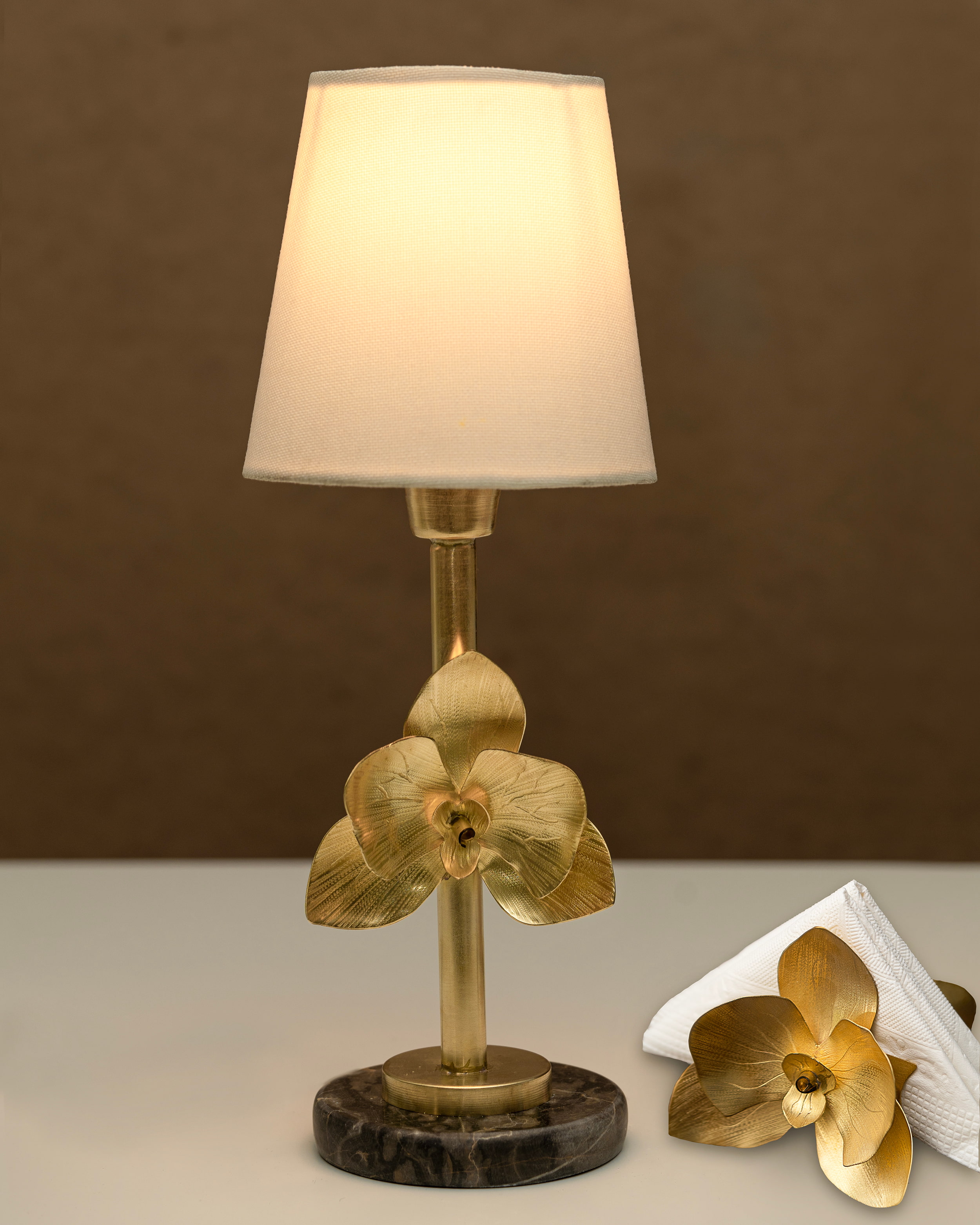 آباژور رومیزی برنجی گالری عزیزی مدل گل ارکیده { مناسب سالن پذیرایی }
