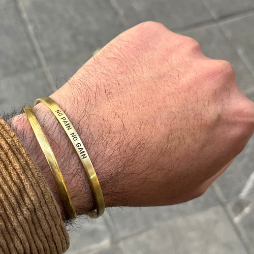 دستبند مردانه برنجی گالری عزیزی مدل NO PAIN NO GAIN