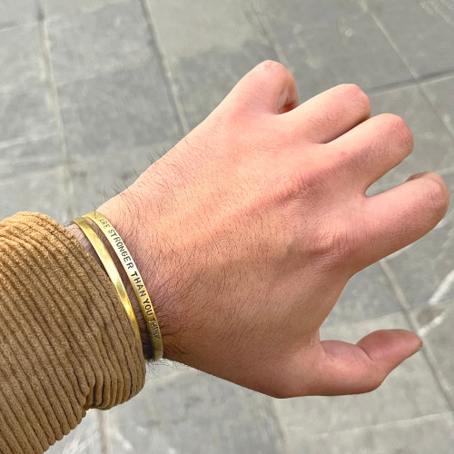 دستبند برنجی زنانه و مردانه گالری عزیزی مدل تو از آنچه که فکر میکنی قوی تر هستی