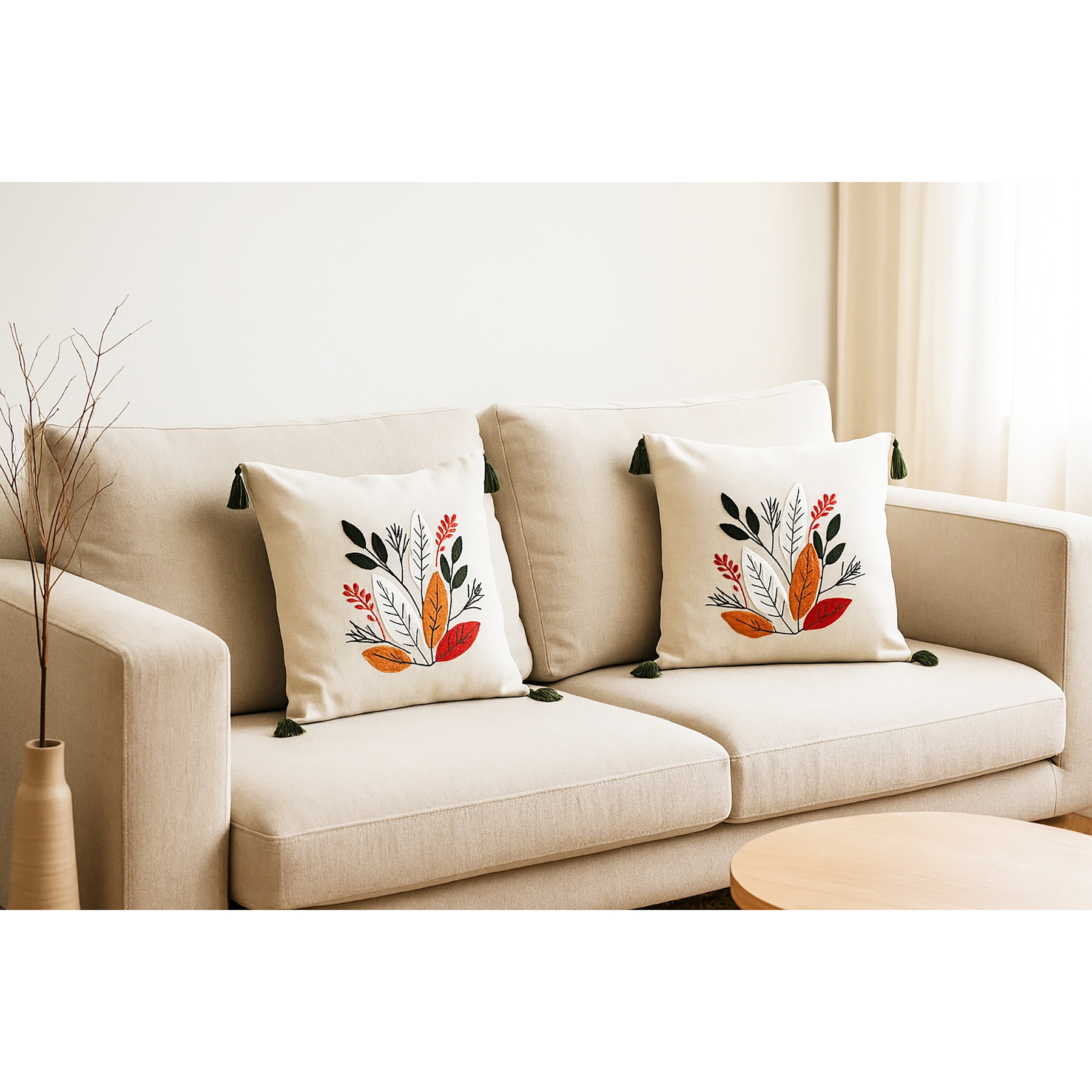 کاور کوسن دستدوز طرح برگ برجسته مجموعه 2 عددی
