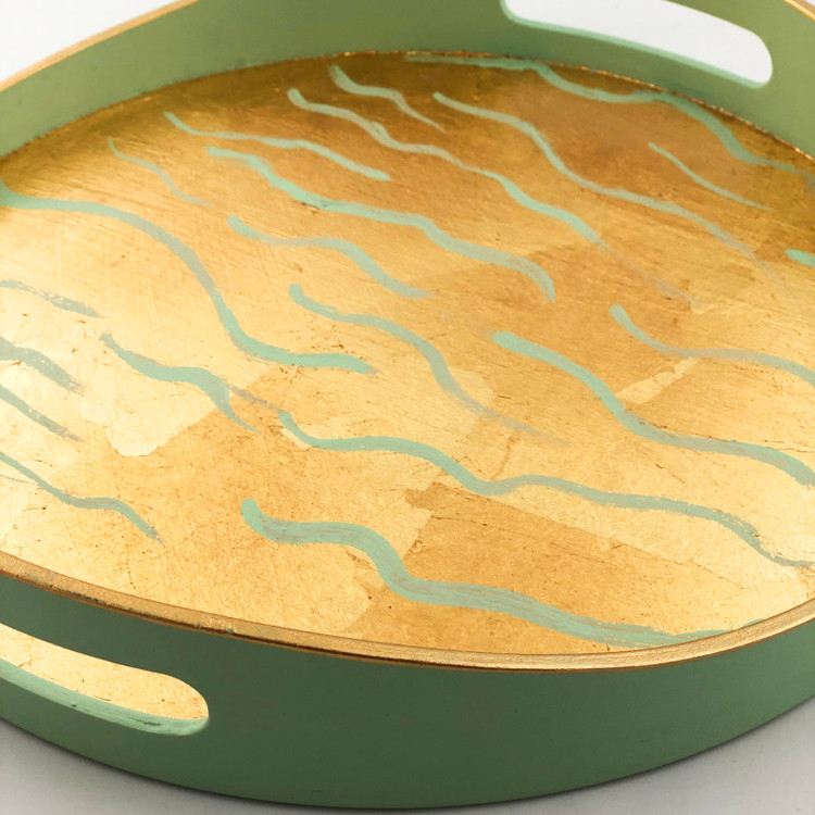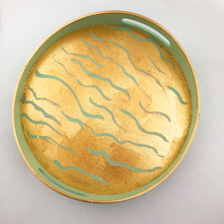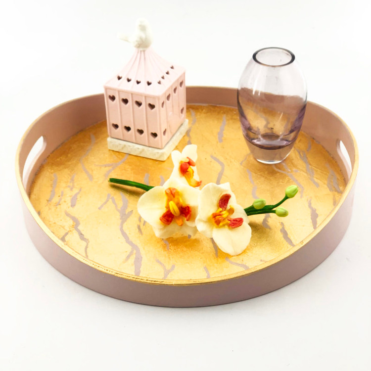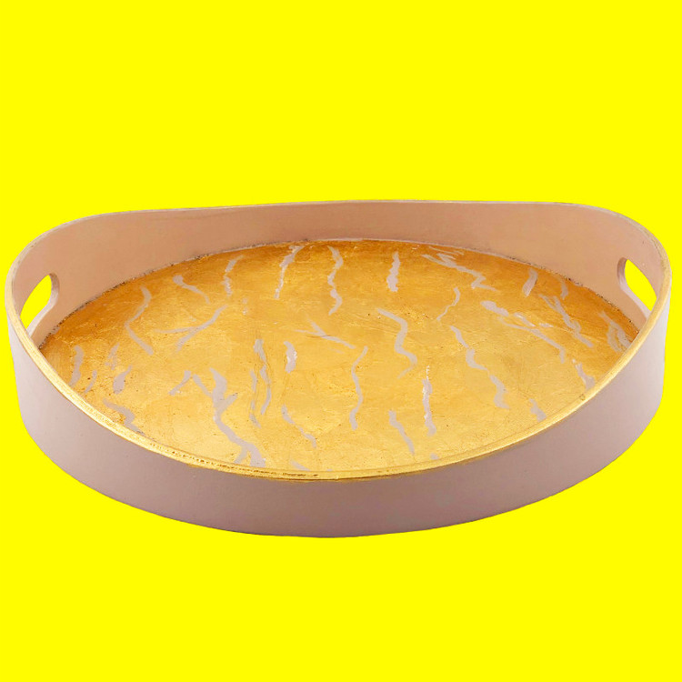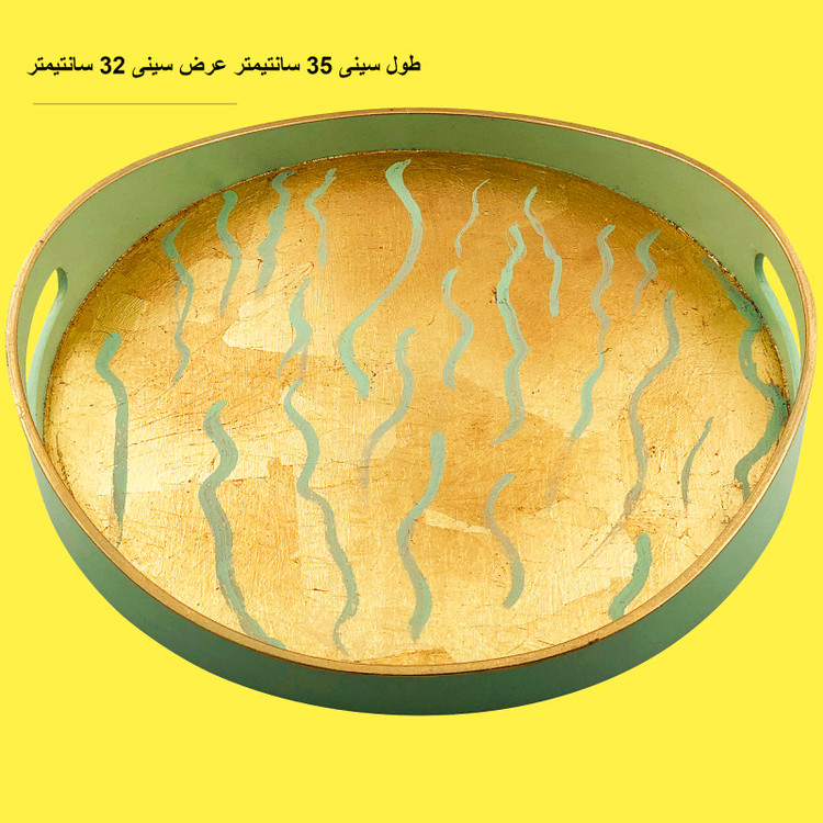 سینی پذیرایی مدل GZ99691 از جنس چوب و ورق طلای است . این سینی تماما کف آن با ورق طلا کار شده است . و جزو دسته سینی های لوکس و لاکچری که برای استفاده در مهمانی ها و مراسم خاص قابل استفاده است . این سینی به دلیل طراحی خاص آن منحصر به فرد بوده و مناسب کسانی است که همیشه دنبال کارهای خاص هستند