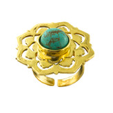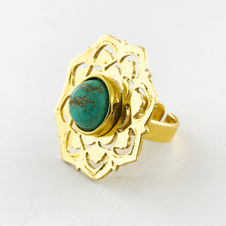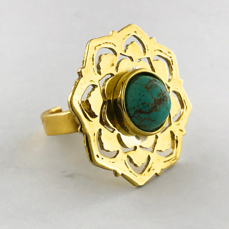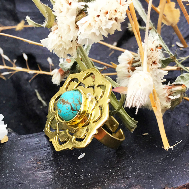 انگشتر زنانه گالری عزیزی مدل 99986 از جنس برنج و سنگ فیروزه است . این انگشتر کاملا دستساز بوده و با تکنیک اره کاری جواهر ساخته شده است ، از طراحی تا ساخت آن توسط گروه هنری گالری عزیزی انجام شده است . و همین امر باعث گردیده کسانی که به دنبال کارهای خاص و منحصر به فرد هستند بتوانن انتخاب خوبی داشته باشند .