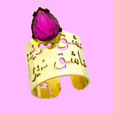 انگشتر زنانه گالری عزیزی طرح شعر مدل 15700 از جنس برنج و سنگ آمیتیس است . این انگشتر کاملا دستساز بوده و با تکنیک اره کاری جواهر ساخته شده است ، از طراحی تا ساخت آن توسط گروه هنری گالری عزیزی انجام شده است . و همین امر باعث گردیده کسانی که به دنبال کارهای خاص و منحصر به فرد هستند بتوانن انتخاب خوبی داشته باشند درخصوص فلز برنج باید گفت این فلز بسیار برای بدن انسان مفید است و جزو کارهایی است که باید هر چند روز یکبار شستشو شود با آب صابون تا براقیت خود را حفظ کند . و اگر مدتی طولانی استفاده نکردید و کدر شد بهترین تمیز کننده در مرحله اول جلاسنج است و درصورت نبود جلاسنج ، رب گوجه فرنگی را روی کار بمالید و پس از چند دقیقه با آب و شوینده پاک کنید