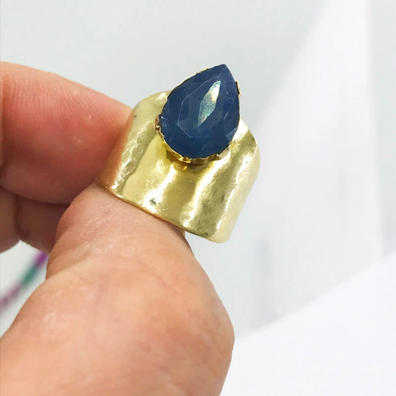 انگشتر زنانه دستساز عزیزی طرح اشک مدل 15710