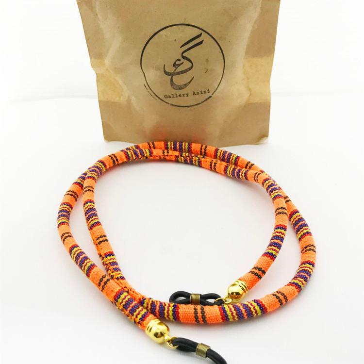 گالری عزیزی در زمینه ساخت زیورالات تلفیقی از فلز ، سنگ ، اشیا ، و لوازم دیگر چندین سال مشغول به فعالیت بوده ، بند عینک مدل 15740 از جنس پارچه است . این بند عینک به خاطر طراحی خاصی که دارد برای تمام تیپ های زنانه و مردانه قابل استفاده و ست کردن است .