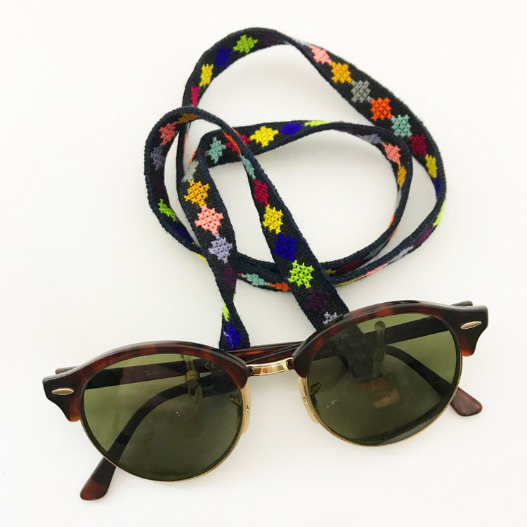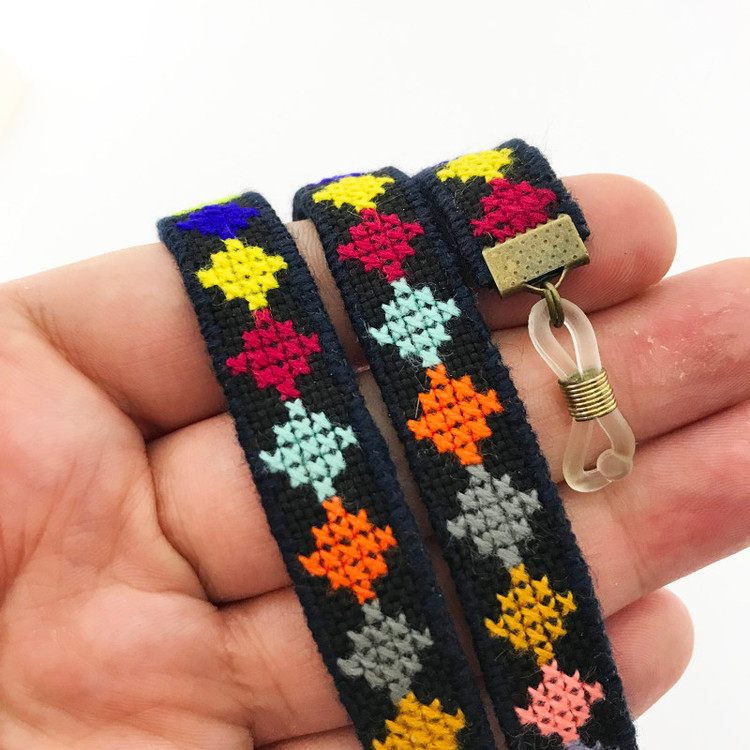بند عینک مردانه سوزن دوزی از جمله کارهای سوزن دوزی بلوچ است ، هنری است منحصر به زنان بلوچ استان سیستان بلوچستان که ظرافت ویژه ایی آن ، سینه به سینه منتقل و ثبت در یونسکو گردید بابت هر بند عینک سوزن دوری چندین هفته هنرمندان وقت گذاشته اند . اثری که در پیش روی شماست حاصل تلاش زنان هنرمند و تلفیق طراحی کارشناسان مد در این زمینه است و همین موضوع باعث گردیده که کاری بسیار خاص و یونیک مناسب افراد سخت پسند و دوستداران کارهای خاص پدید آمده است . این کار قابل شستشو بوده و بهتر است با اتو به صورت مستقیم قرار نگیرد .