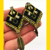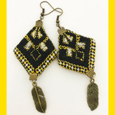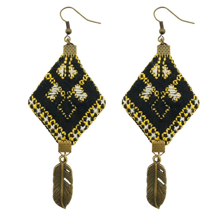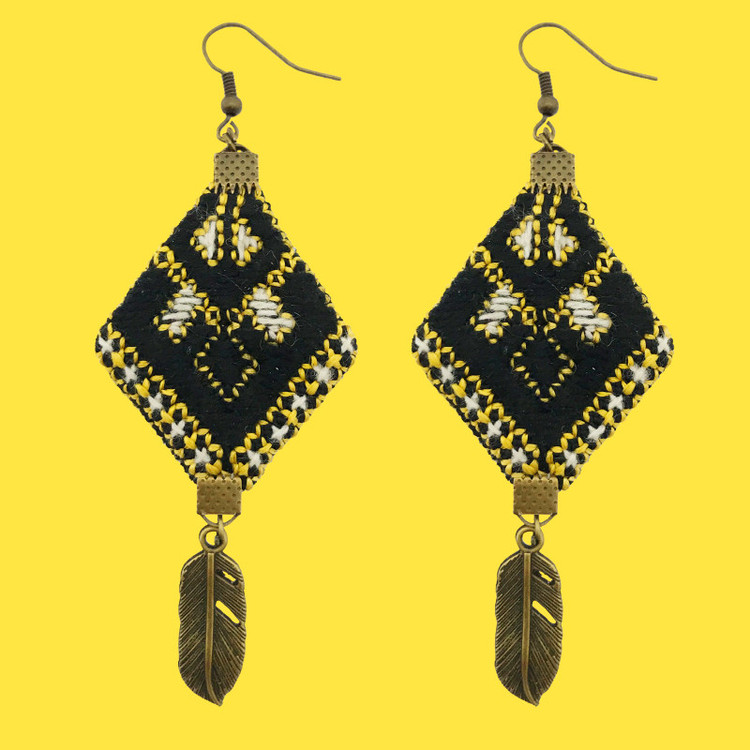 گوشواره زنانه سوزن دوزی روچ طرح لوزی مدل 15729