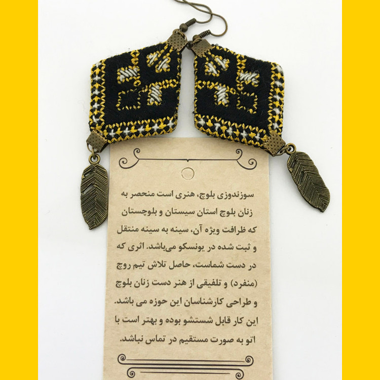 گوشواره زنانه سوزن دوزی مدل gz15729 از جمله کارهای سوزن دوزی بلوچ است ، هنری است منحصر به زنان بلوچ استان سیستان بلوچستان که ظرافت ویژه ایی آن ، سینه به سینه منتقل و ثبت در یونسکو گردید بابت هر گوشواره سوزن دوری چندین هفته هنرمندان وقت گذاشته اند . اثری که در پیش روی شماست حاصل تلاش زنان هنرمند و تلفیق طراحی کارشناسان مد در این زمینه است و همین موضوع باعث گردیده که کاری بسیار خاص و یونیک مناسب افراد سخت پسند و دوستداران کارهای خاص پدید آمده است . این کار قابل شستشو بوده و بهتر است با اتو به صورت مستقیم قرار نگیرد