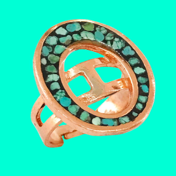 انگشتر زنانه و مردانه گالری عزیزی مدل 15871 از جنس مس و فیروزه کوبی است و با هنر دست ساخته شده است . زیورهای مسی غیر از اینکه برای زینت استفاده میشوند برای بدن نیز مفید بوده و باعث افزایش ین های خون میگردد که کمک به بهبود گردش خون و بهبود بیماری رماتیسم میگردد . برای نگهداری آن کافیست زیورهای مسی را به صورت مرتب با آب و صابون یا هر شوینده دیگری بشورید تا همیشه براق تمیز باقی بمانند .