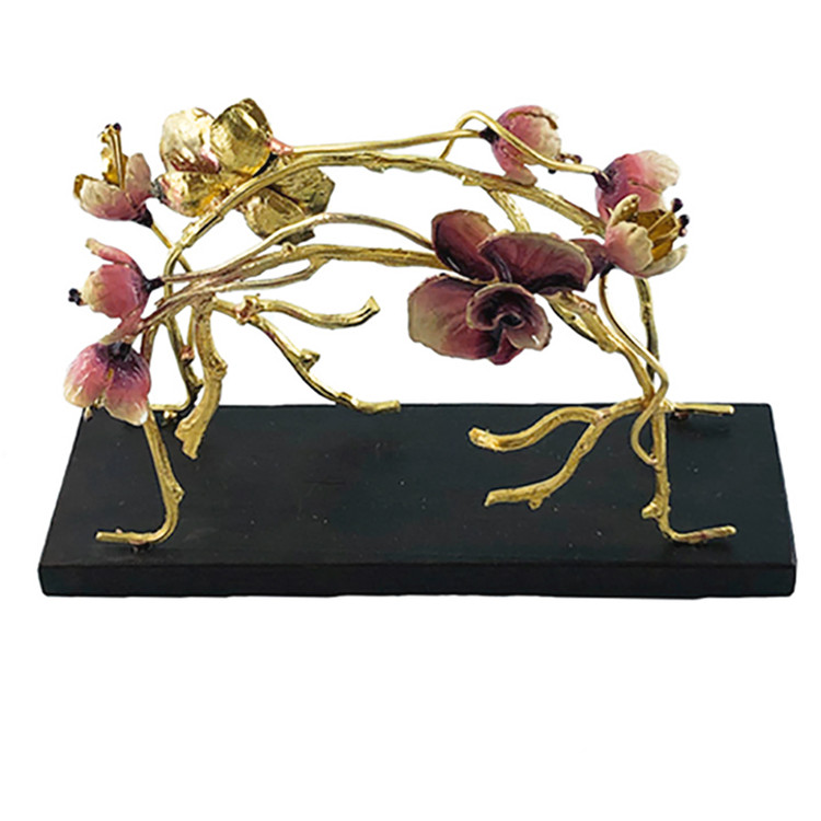 جا دستمالی دستساز گالری عزیزی مدل گل از جنس فلز برنج است که روی آن میناکاری سرد صورت گرفته و در نهایت روی پایه چوبی کار گذاشته شده است . این اثر در عین کاربردی و دکوری جذاب و لوکس در منزل شما ، یک اثر هنری دستساز است که تمام مراحل ساخت آن با دست و توسط استادکار هنری انجام شده است و دلیل طولانی بودن پروسه ساخت به دلیل دستسازی و داشتن ریزکاری زیاد است