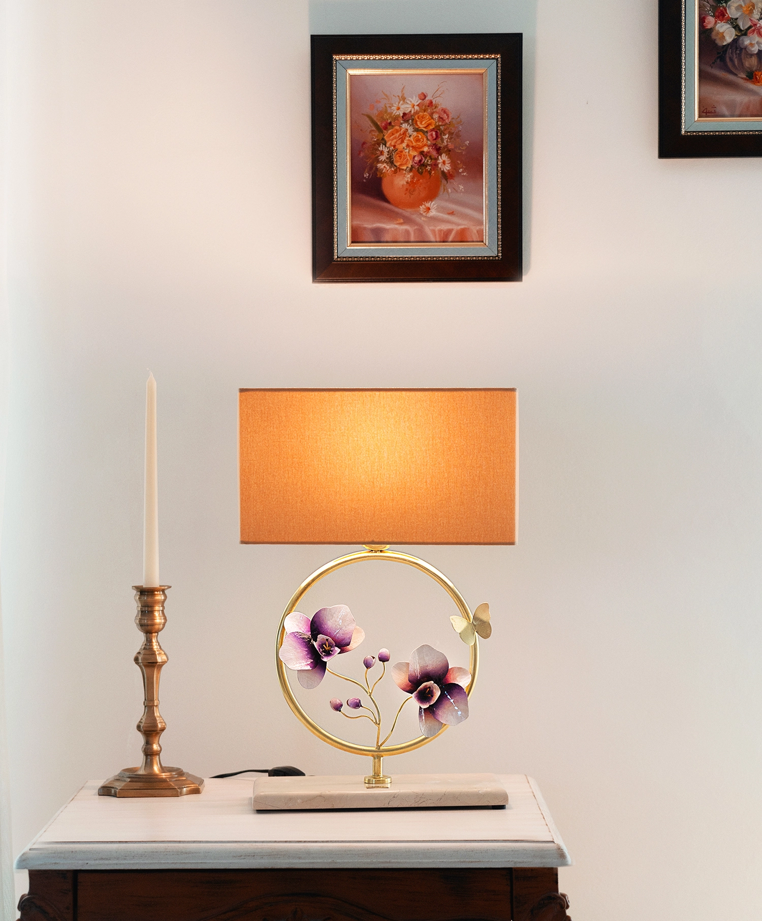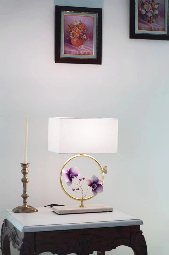 آباژور دستساز رومیزی گالری عزیزی مدل گل های جاودان ( میناکاری شده )