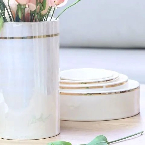 جنس : سرامیک دستساز با لعاب سفید صدفی و لاستر طلا 18 عیار