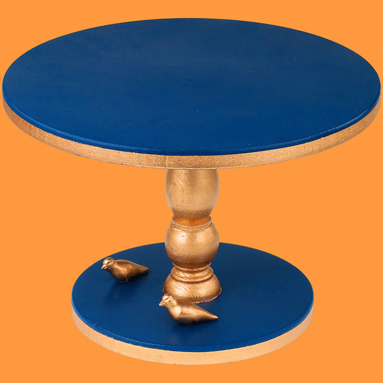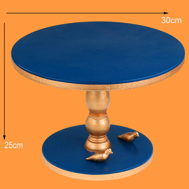 کیک خوری طرح پرنده مدل gz14542 از جنس چوب و مواد مخصوص گلسازی ایتالیایی میباشد . این کیک خوری دارای دو قسمت پایه و صفحه است که روی پایه کار شده است و برای مهمانی ها و جشن تولد یک گزینه خاص برای سرو خواهد بود و رنگ خاص این کیک خوری که از ترکیب رنگ سرمه ایی و ورق طلا میباشد ، ترکیب خاصی را به شما داده که همین باعث یونیک و خاص بودن بیشتر این ظرف گردیده است .