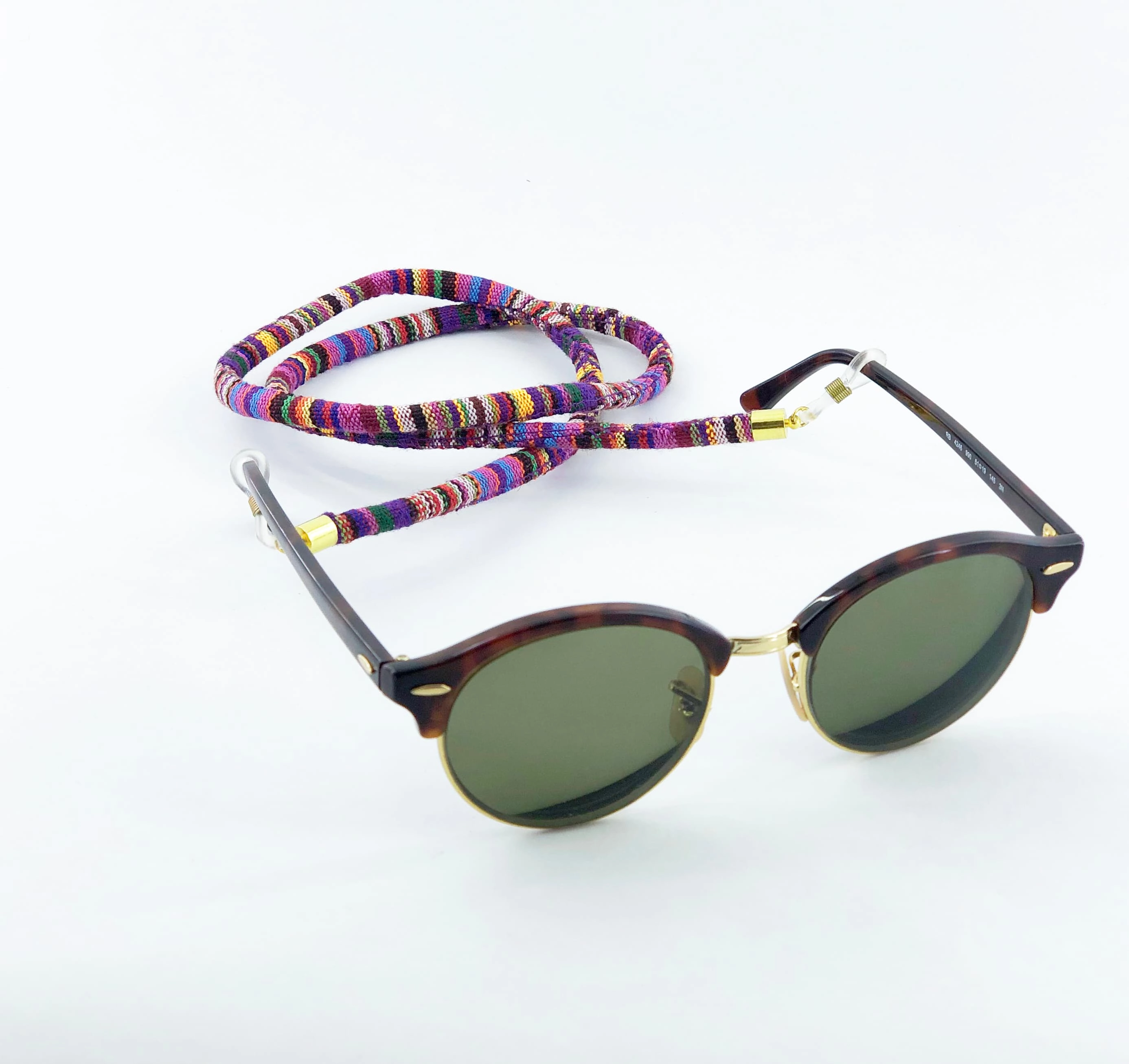 بند عینک دستساز گالری عزیزی مدل رنگین کمان از جنس پارچه بسیار خاص و کتان ساخته شده است و هنر دست زنان ایرانی است که با پارچه های خاص و دوخت ظریف شکل لوله ایی بند عینک را پدید آورده اند . این بند عینک دستساز به طول 70 سانتیمتر است که مناسب برای هر تیپ و سلیقه زنان و مردان است که بند عینک میتواند جلوه خاصی به صورت شما میدهد