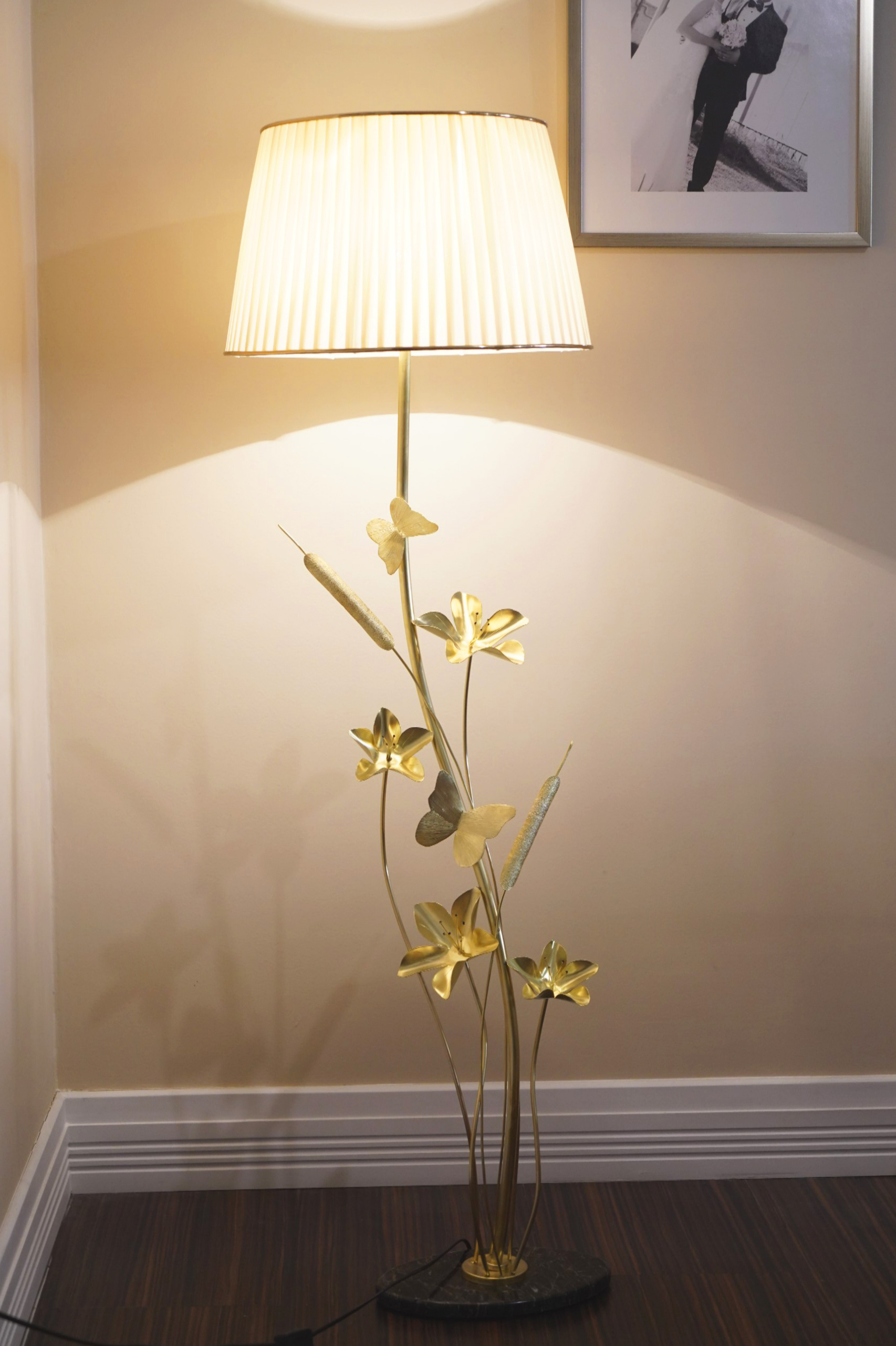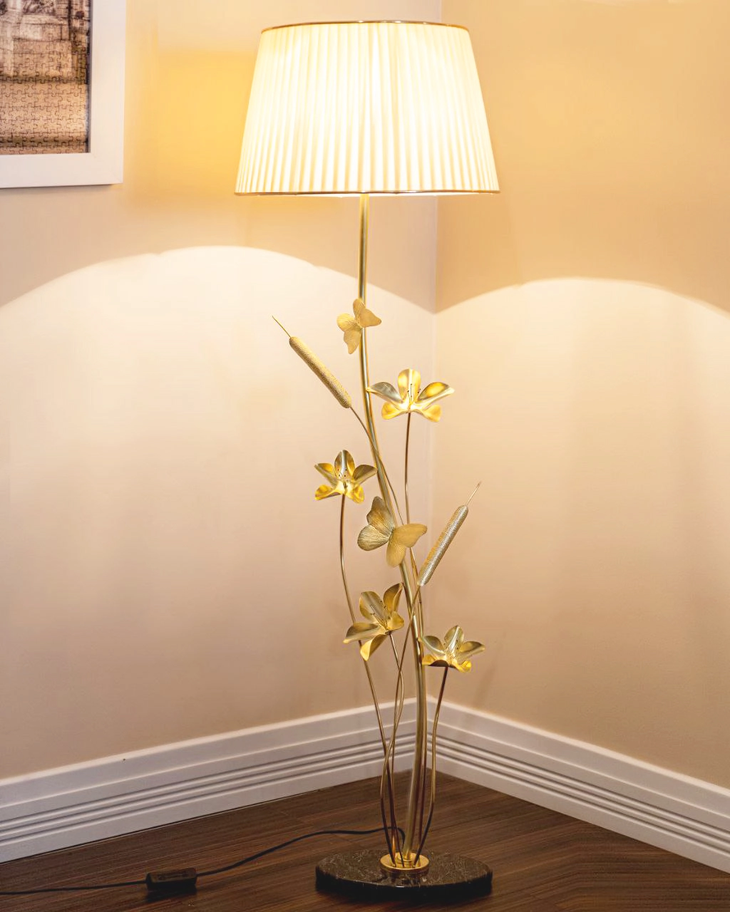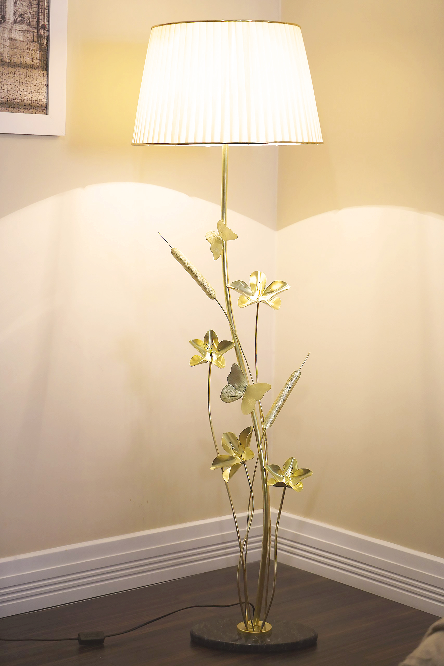 آباژور دستساز ایستاده گالری عزیزی مدل گل و پروانه