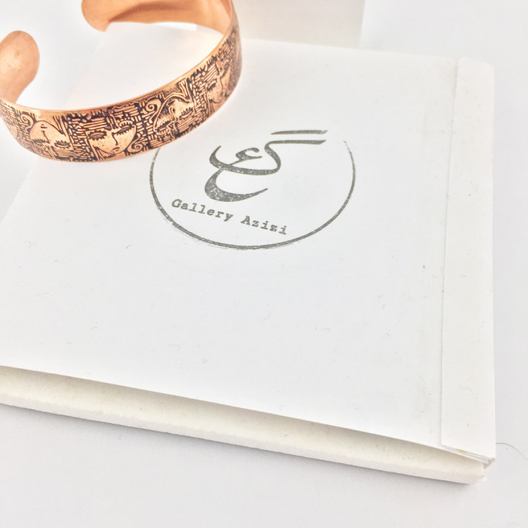 گالری عزیزی در زمینه ساخت زیورالات تلفیقی از فلز ، سنگ ، اشیا ، و لوازم دیگر چندین سال مشغول به فعالیت بوده . و در بین آثار این گالری تمام سلایق و تیپ ها میتوانند کالا مورد نظر خود را پیدا کنند دستبند زنانه و مردانه مدل gz14319 از جنس مس خالص است . این دستبند دست ساز با هنر دست هنرمندان گالری عزیزی به این طرح خاص رسیده است . و فلز مس طبق اطلاعاتی که وجود دارد برای اعصاب و بدن و همچنین عملکرد بهتر خون رسانی بدن تأثیرات مثبت زیادی دارد