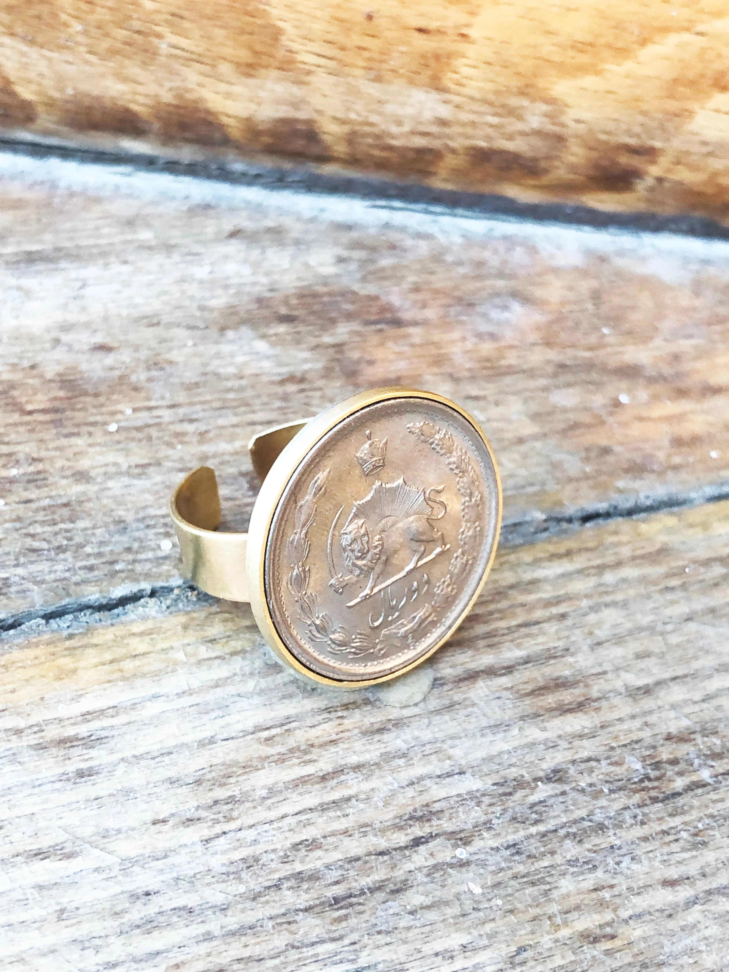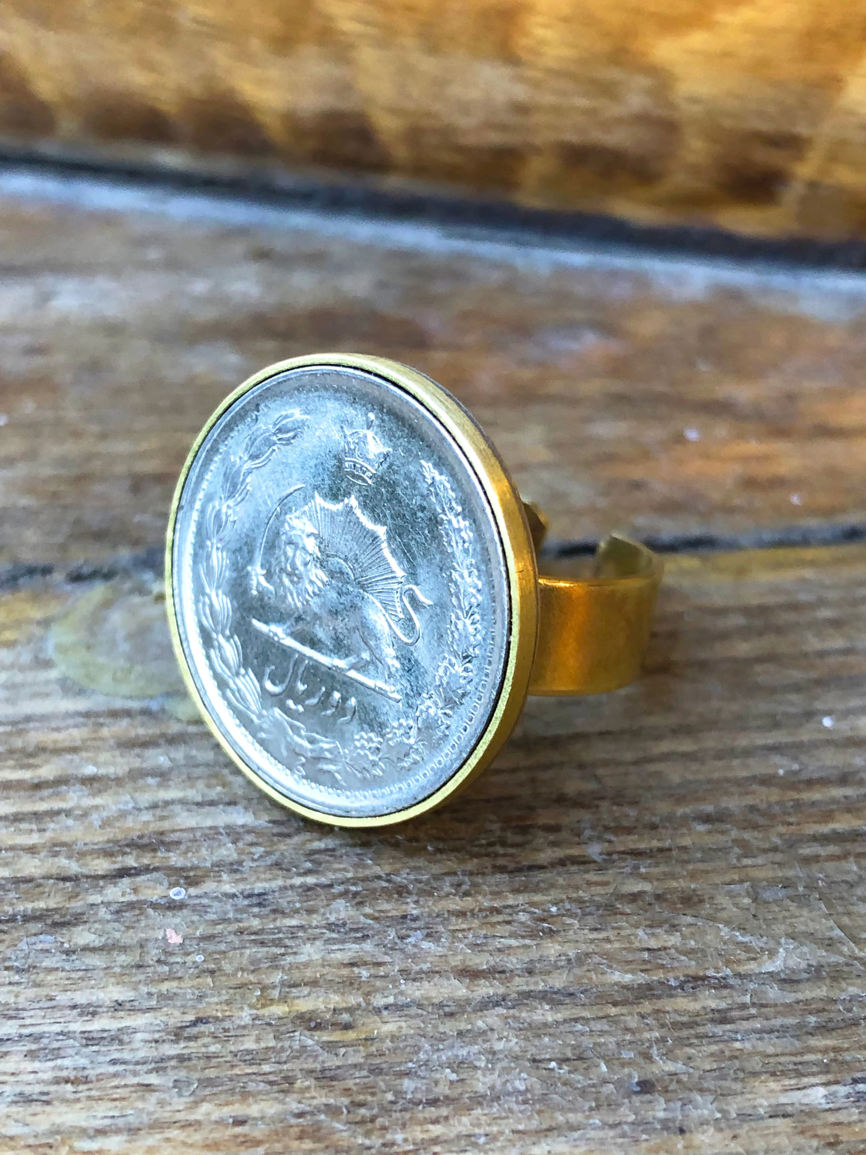 انگشتر گالری عزیزی طرح سکه پهلوی از جنس برنج و سکه واقعی است . سکه دو ریالی زمان پهلوی که نیمرخ محمد رضا شاه یک طرف سکه است کار شده روی انگشتر مربوط به دهه 50 هست که برای بسیاری از مردمان ایران زمین حس نوستالژی دارد . این انگشتر بسیار یونیک و خاص است و گزینه ایده الی برای افرادی است که همیشه دنبال انگشترهای منحصر به فرد هستند میباشد