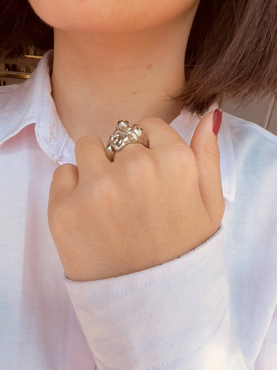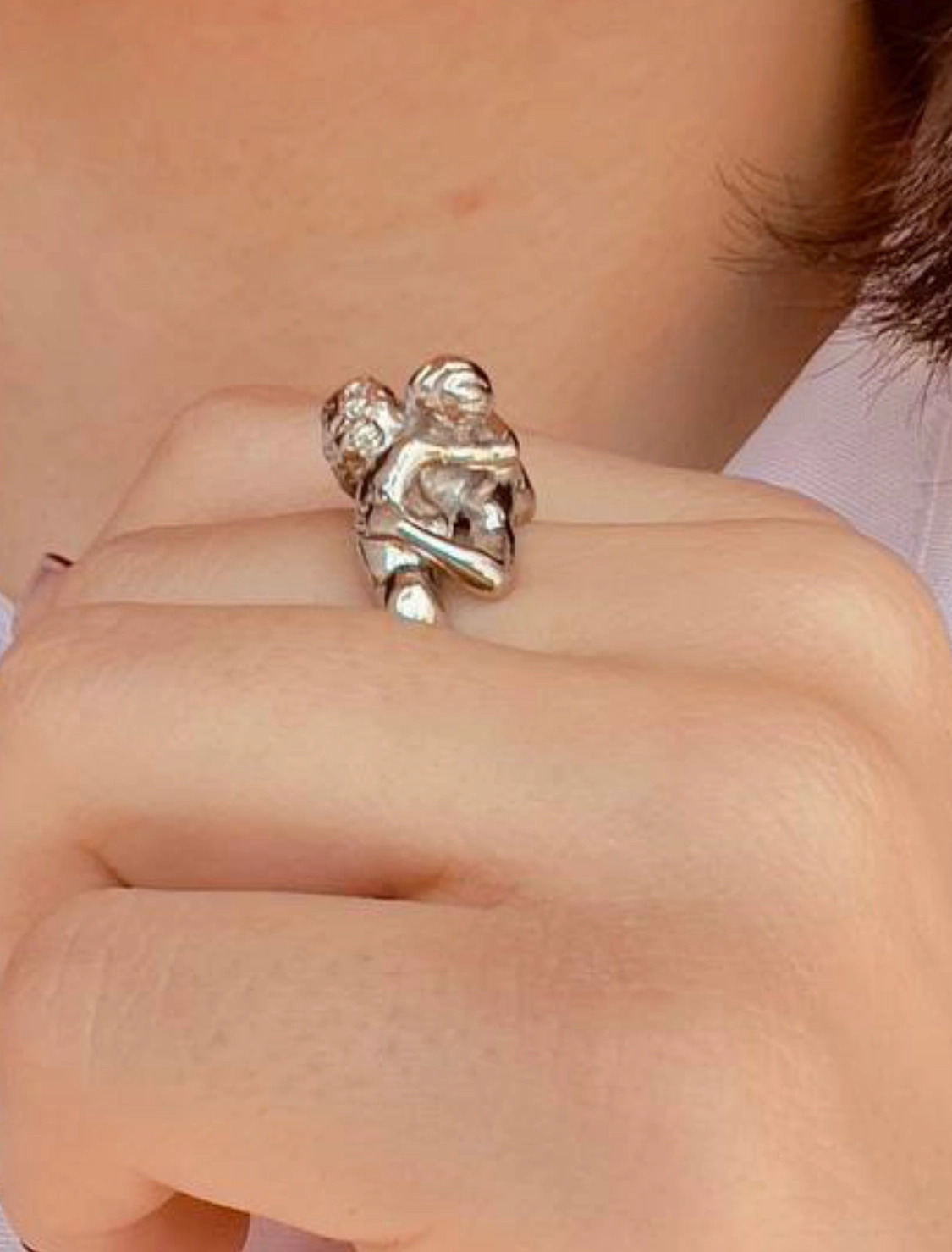 انگشتر زنانه استیل گالری عزیزی مدل بوسه یکی از انگشتر های خاص مجموعه گالری عزیزی است که با هنر هنرمندان گالری با استفاده از المان های مجسمه های میکلانژ این بوسه زن و مرد روی انگشتر کار شده که انگشتری زنانه یا انگشتری دخترانه استیل خاص برای خاص پسندان شده