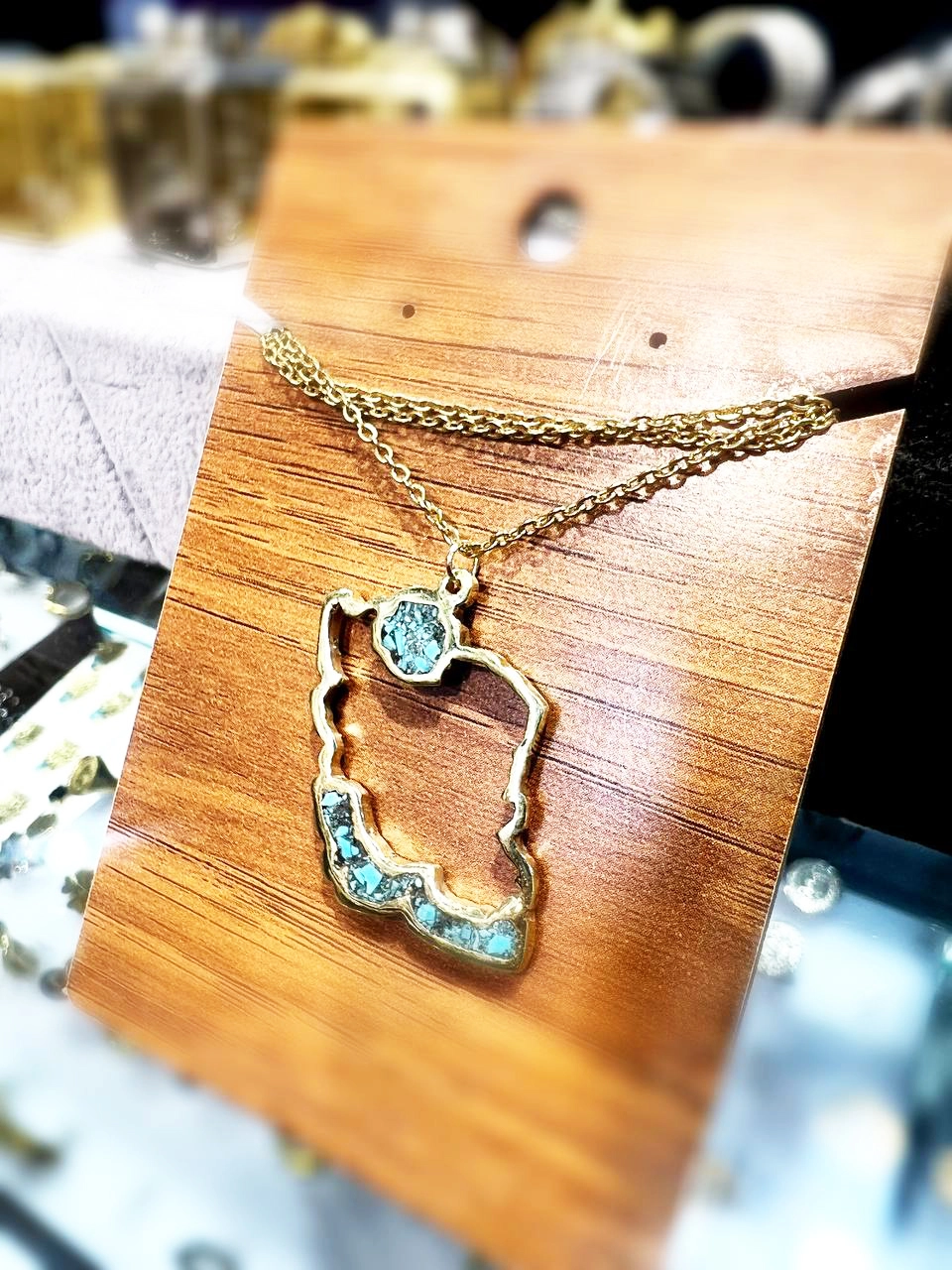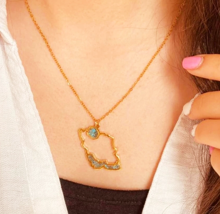 گردنبند زنانه استیل مدل نقشه ایران از جنس استیل رنگ ثابت و فیروزه کوبی است . این گردنبند گزینه عالی برای هدیه دادن به عزیزان شما خواهد بود