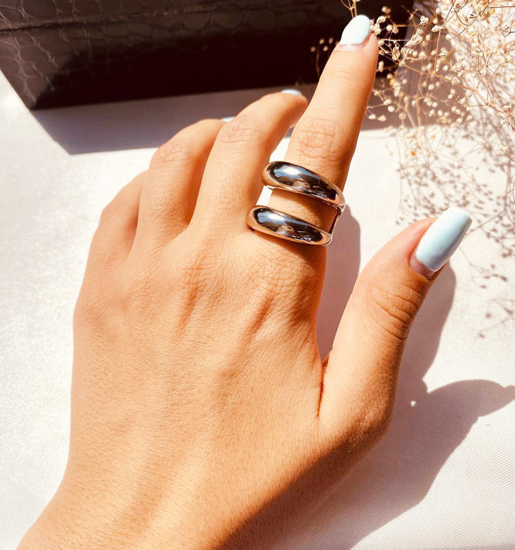انگشتر زنانه استیل گالری عزیزی مدل دو حلقه