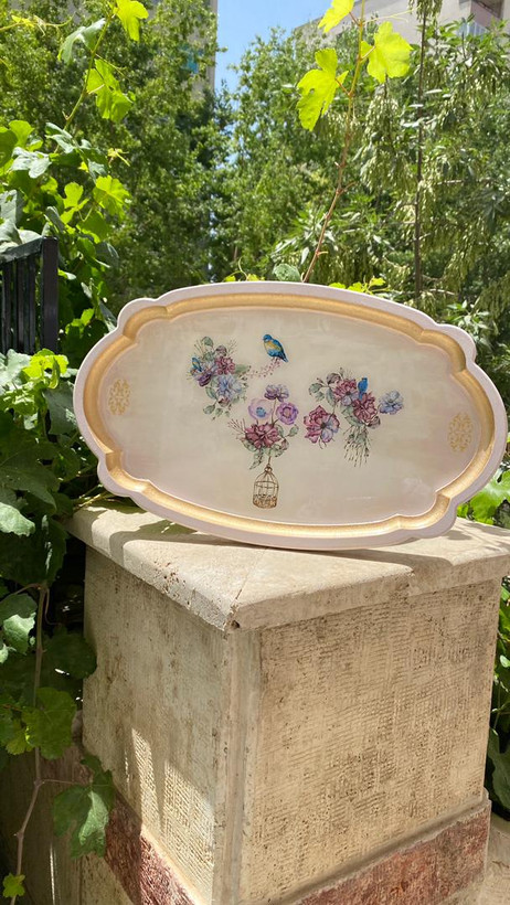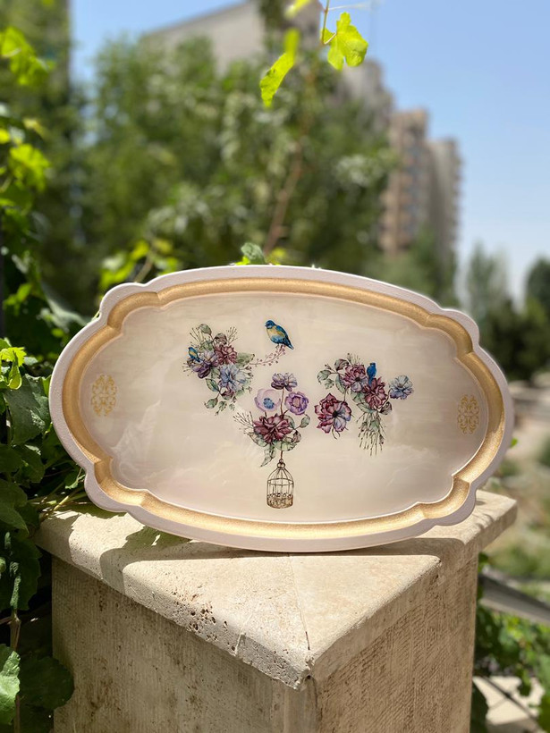 سینی پذیرایی چوبی دستساز گالری عزیزی مدل گل رز