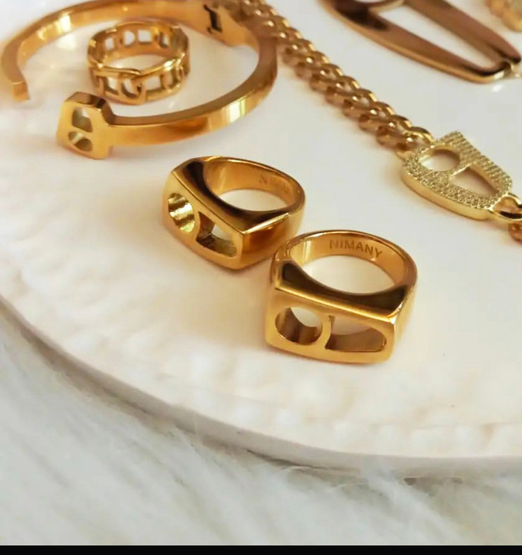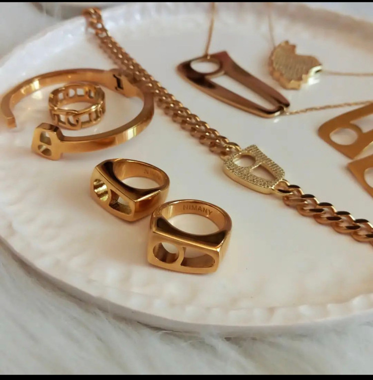 گالری عزیزی در زمینه ساخت زیورالات تلفیقی از فلز ، سنگ ، اشیا ، و لوازم دیگر چندین سال مشغول به فعالیت است. و در بین آثار این گالری تمام سلایق و تیپ ها میتوانند کالا مورد نظر خود را پیدا کنند . انگشتراستیل نیمانی طرح حرف هـ از جنس استیل رنگ ثابت ۳۱۶ است. که روی آن روکش طلا کار شده است و با هنر دست هنرمندان ساخته شده است . این انگشتر با طراحی که دارد حس داشتن انگشتر خاص و منحصر به فرد را به شما میدهد.