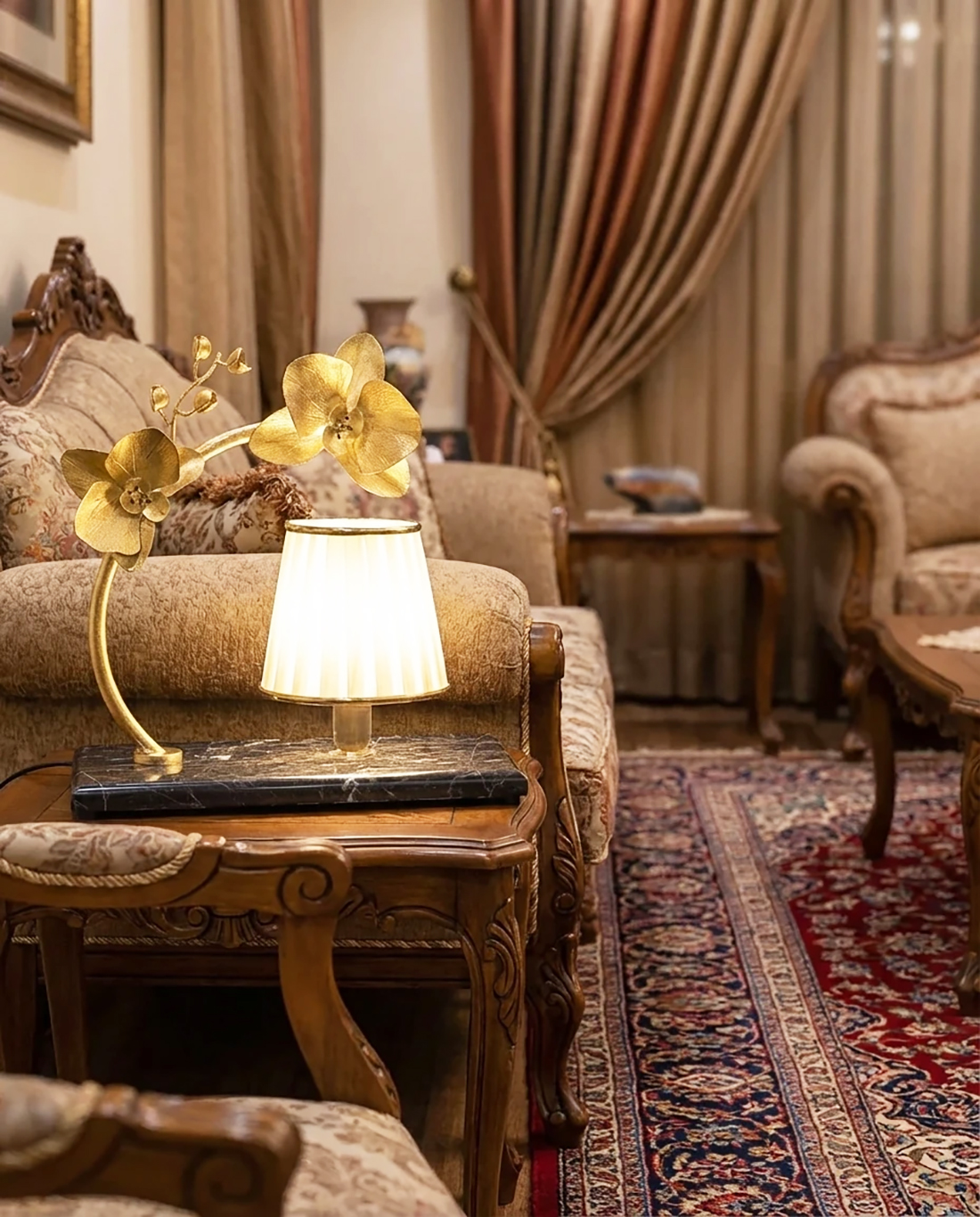 ویژگی: جنس بدنه از برنج خالص رنگ ثابت بدون نغییر رنگ و سنگ از گرانیت درجه یک و پارچه ابریشم ترک برای شید