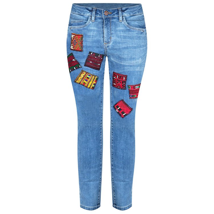 شلوار جین زنانه سوزندوزی بلوچی روچ مدل تیکه دوزی