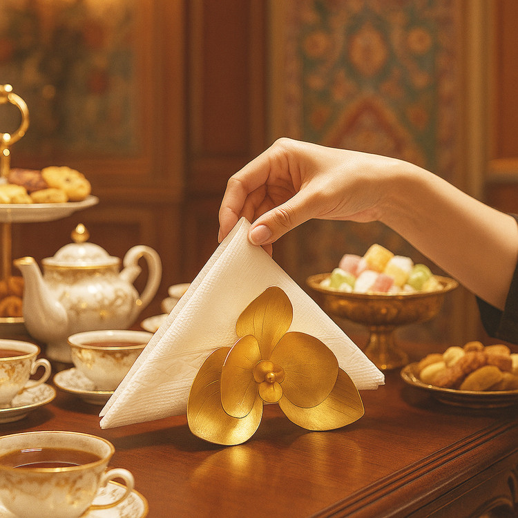 جادستمال کاغذی رومیزی برنجی گالری عزیزی مدل گل بزرگ