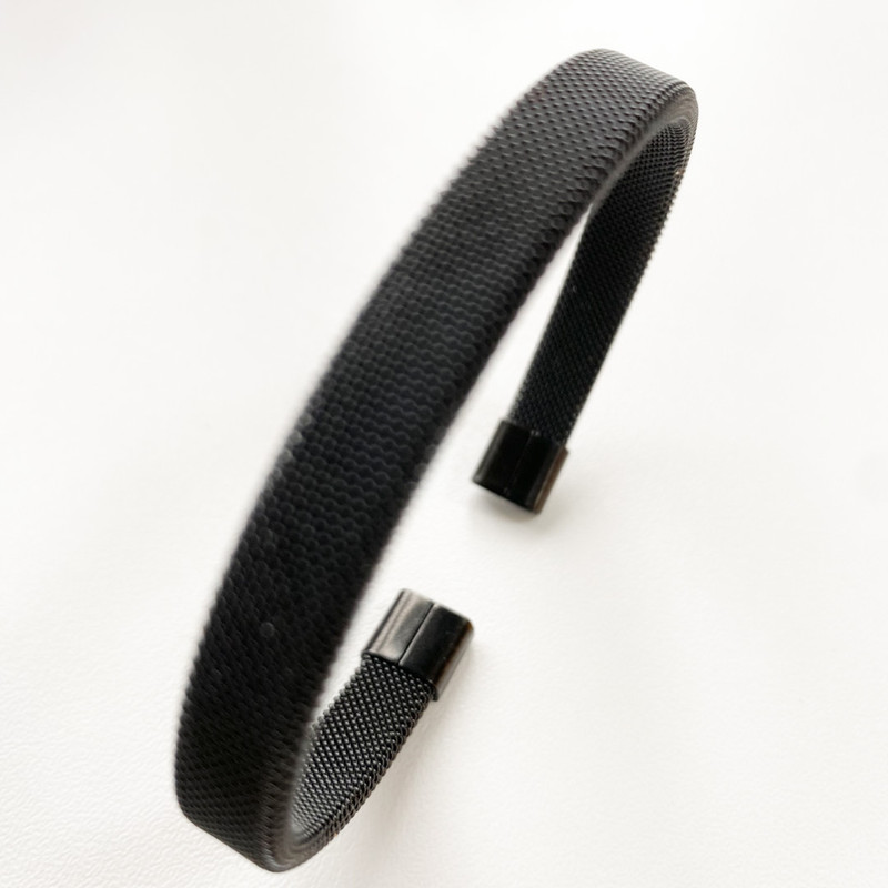 این مدل به رنگ بدنه مشکی، نقره ای و طلایی نیمه مات و از جنس استیل است که در استفاده طولانی مدت تغییر رنگ نخواهد داشت. این مدل که به صورت بنگل می باشد فری سایز بوده و برای استفاده در مچ دست های مردانه کاملا راحت است. هم چنین جنس بدنه دستبند حساسیت برای پوست ایجاد نمیکند. بافت ریز بدنه دستبند خیلی شیک و متفاوت دیده می شود و رنگ خاص آن دستبند را زیباتر می کند. می توانید برای استفاده در تک دست و پشت ساعت از این دستبند استفاده کنید. هم چنین تنوع رنگ بدنه کمک می کند تا با هر استایلی قابل ست شدن باشد.
