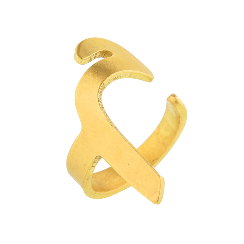 انگشتر زنانه مدل حرف میم از جنس برنج است و هنر دست هنرمندان ایرانی است که با تکنیک اره کاری دستی این انگشتر را ساخته اند . این انگشتر رنگ ثابت بدون تغییر رنگ است و میتوان به راحتی با هر شوینده ای بشورید با خیال راحت استفاده کنید