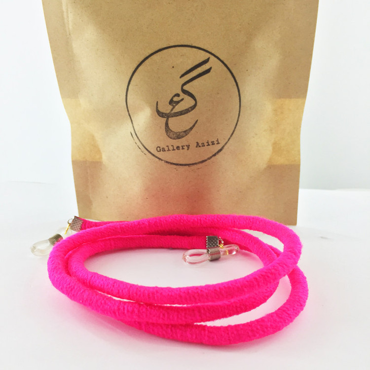 گالری عزیزی در زمینه ساخت زیورالات تلفیقی از فلز ، سنگ ، اشیا ، و لوازم دیگر چندین سال مشغول به فعالیت بوده ، بند عینک زنانه مدل 14239 از جنس نخ گلیم است و با تکنیک گلیم بافی توسط زنان هنرمند کشور عزیزمان بافته شده است . این بند عینک به خاطر طراحی خاصی که دارد برای تمام تیپ های زنانه و مردانه قابل استفاده و ست کردن است .