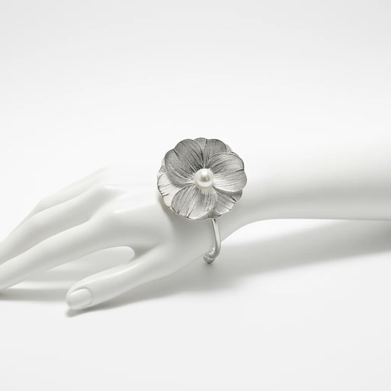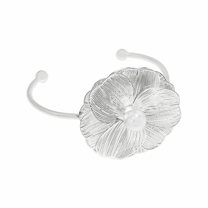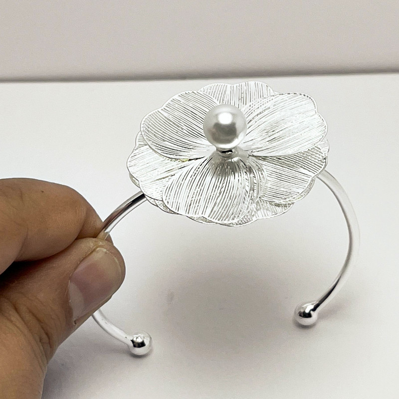 دستبند النگویی زنانه مدل گل و مروارید