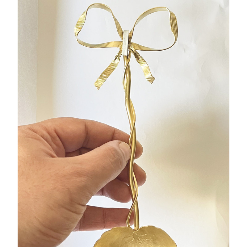 قاشق آجیل خوری مدل پاپیون قلبی از جنس برنج است که با هنر دست ساخته شده است . طراحی و اجرای این قاشق کاملا انحصاری و نمونه مشابهی در بازار ندارد و جزو کارهای لوکس و خاص برای کسانی است که ابزار سرو پذیرایی خاص و یونیک دوست دارند گزینه مناسبی خواهد بود . و قاشق رنگ ثابت بدون تغییر رنگ است و به راحتی میتوانید در ماشین ظرفشویی بشورید .