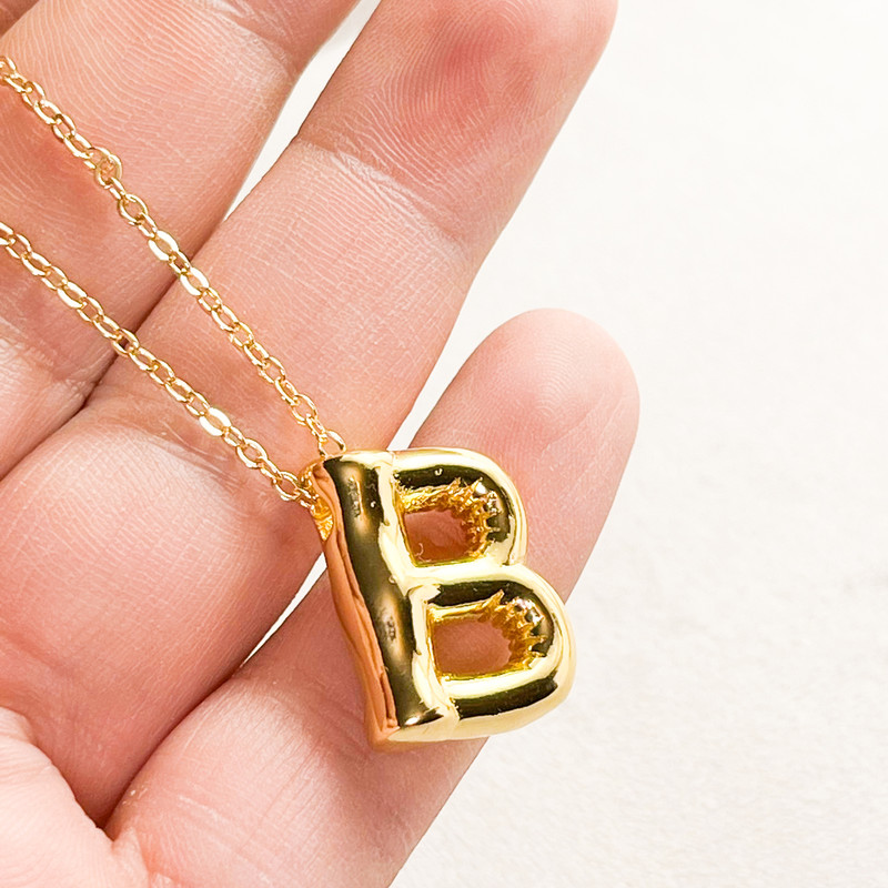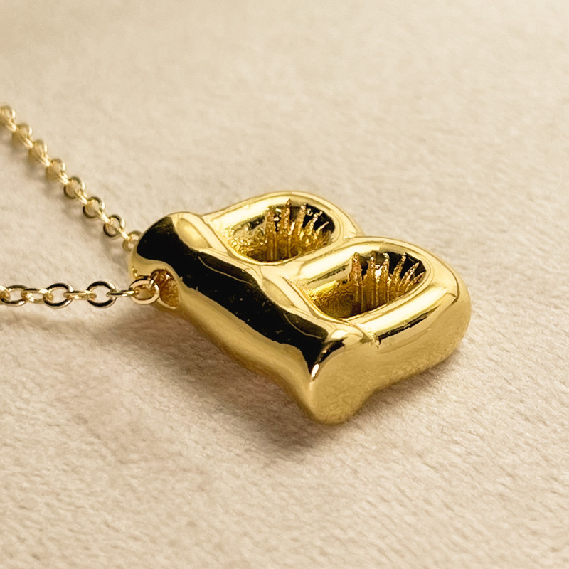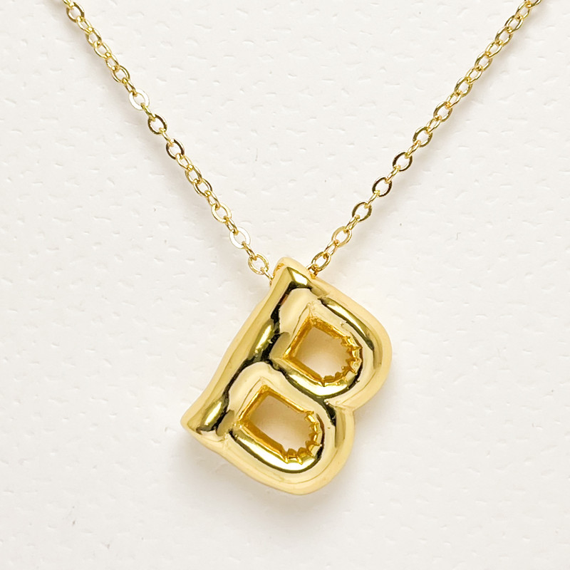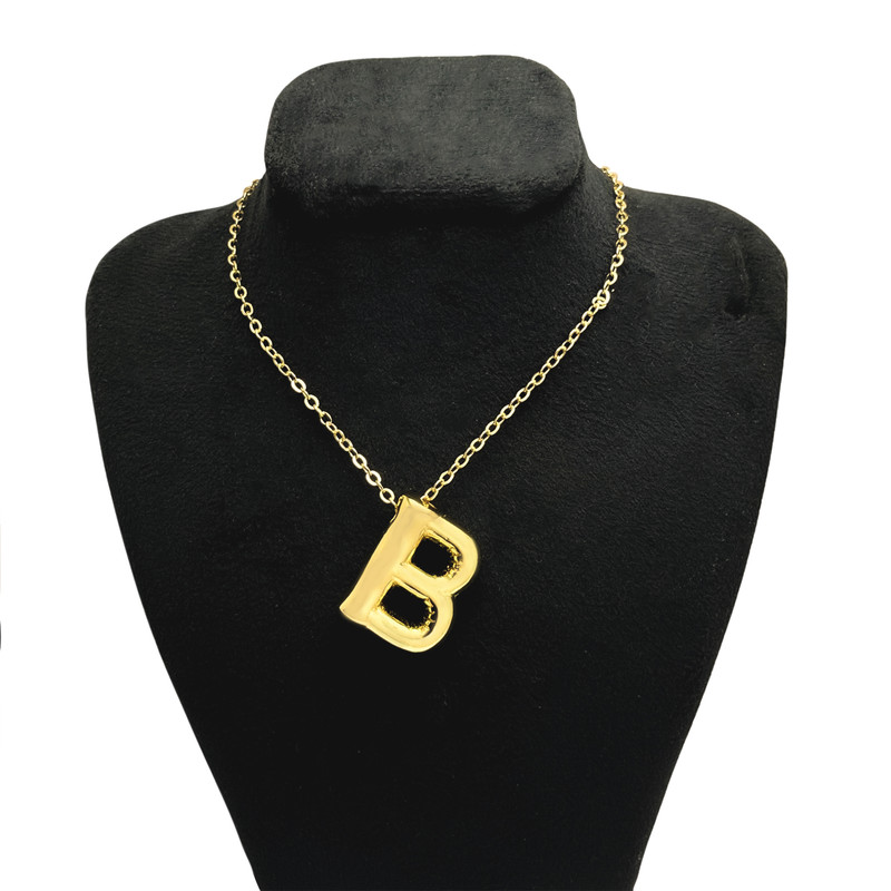 گردنبند زنانه مدل حرف B از جنس استیل که روی آن آبکاری طلا انجام شده است و این آبکاری رنگ ثابت و بدون تغییر و بدون ایجاد حساسیت است . پلاک حرف B شبیه سازی بادکنک های حروف است که حس جالبی دارد و این که پلاک تو پر است و ضخامت دارد باعث شده نسبت به دیگر گردنبند های حروف بسیار متمایز شود