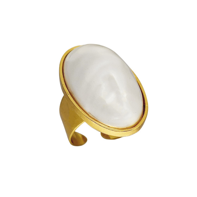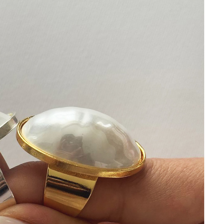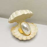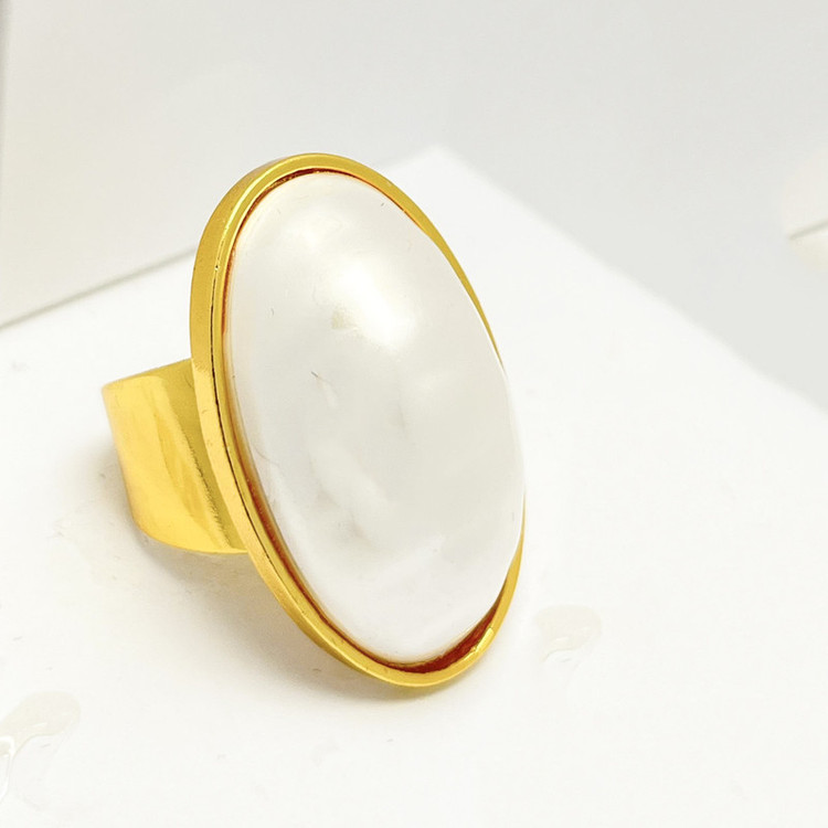 انگشتر زنانه مدل مروارید از جنس استیل با آبکاری طلا است و روی انگشتر یک مروارید بزرگ پرورشی زیبا کارشده است . انگشتری با این مروارید بزرگ و چشم نواز یک حس خاص و جذابی به استایل شما خواهد داد . و برای نگهداری از این انگشتر بهتر است برای حفظ ظاهر مروارید و آسیب نزدن به آن از شوینده های قوی و عطر بر روی انگشتر خودداری کنید
