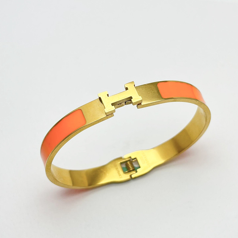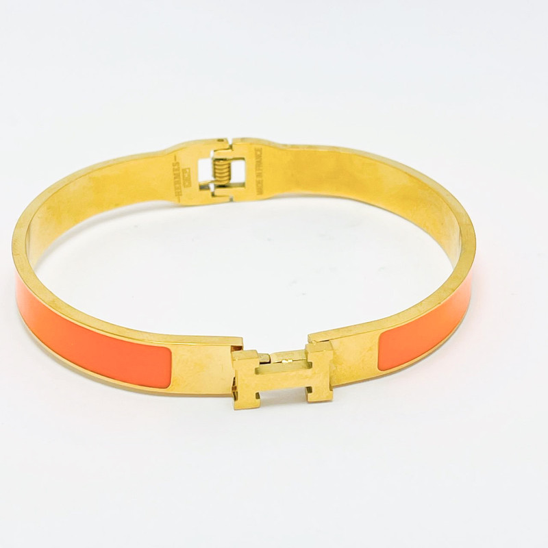 دستبند زنانه مدل حرف H از جنس استیل است که روی آن آبکاری طلا صورت گرفته است . این دستبند جزو کارهای ترندی است که همیشه مد و به روز است .