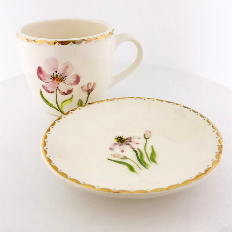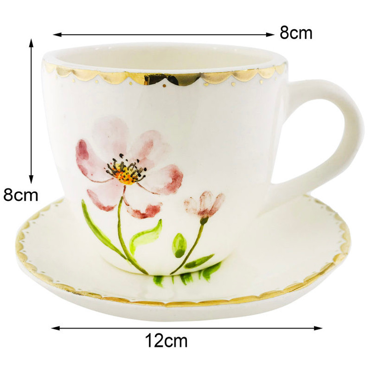 ست فنجان و نعلبکی طرح گل مدل GZ15574 از جنس سرامیک و لاستر طلا 18 عیار میباشد . این ست فنجان و نعلبکی با طراحی خاص و نقاشی با ظرافتی که دارد گزینه مناسبی برای سرو چای و قهوه شما در مهمانی خواهد بود . و گزینه بسیار مناسب برای کسانی است که همیشه دنبال کارهای خاص هستند و زیبایی بصری این کار به قدری جلب نظر میکند که از نگاه کردن به آن لذت زیادی میبردید