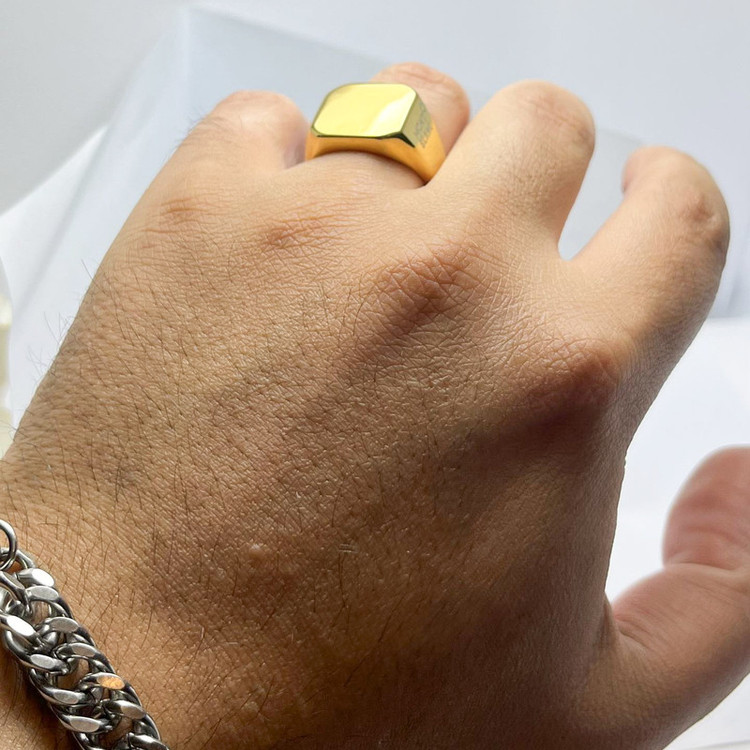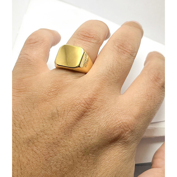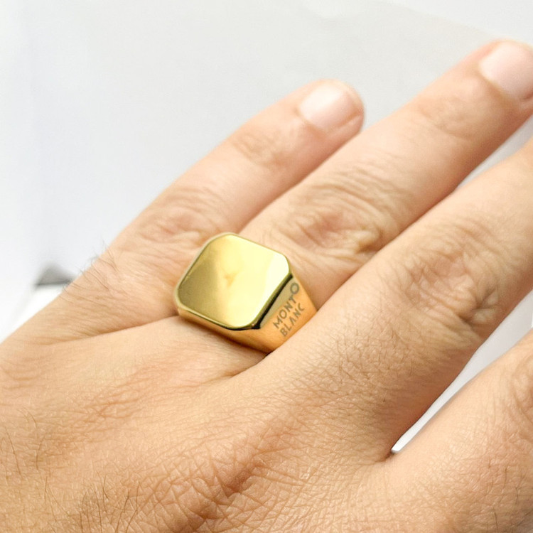 "description": "انگشتر مردانه از برند مونبلان ساختهشده از استیل ضد زنگ با رنگ طلایی براق. طراحی کلاسیک مربعشکل مناسب آقایان خاصپسند.",