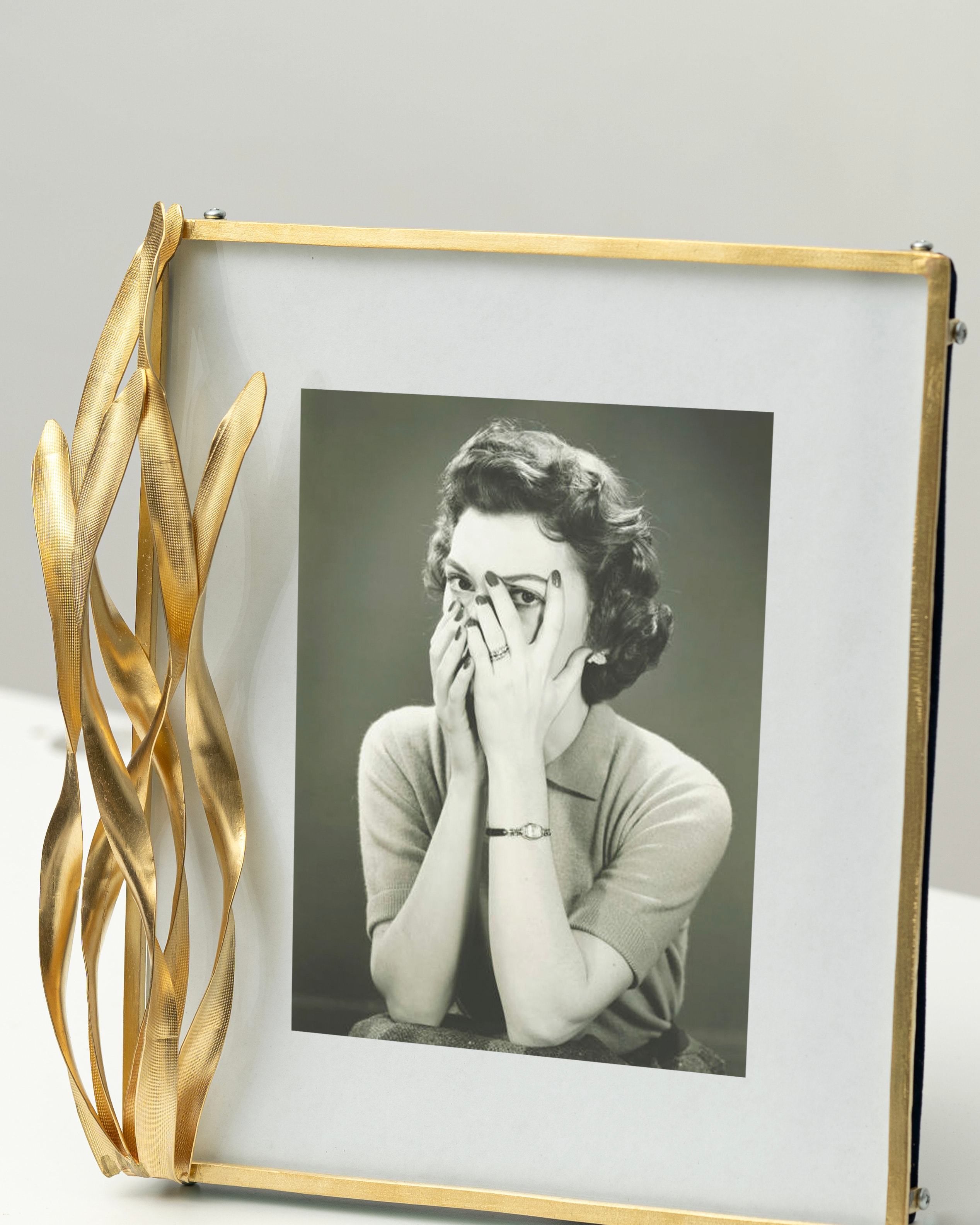 قاب عکس رومیزی برنجی دستساز گالری عزیزی مدل برگ