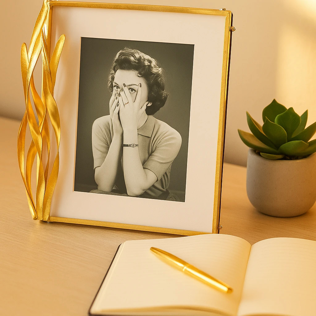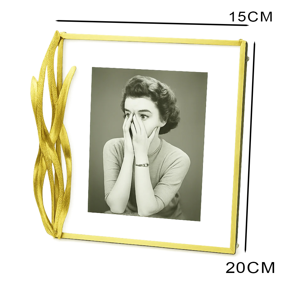 <meta name="description" content="قاب عکس رومیزی طلایی مخصوص میز کار و دکور منزل، ساخته شده از فلز برنج مرغوب با طراحی هنری و لوکس. این قاب خاص از برند گالری عزیزی، انتخابی ایدهآل برای عاشقان دکور مدرن و مینیمال است.">