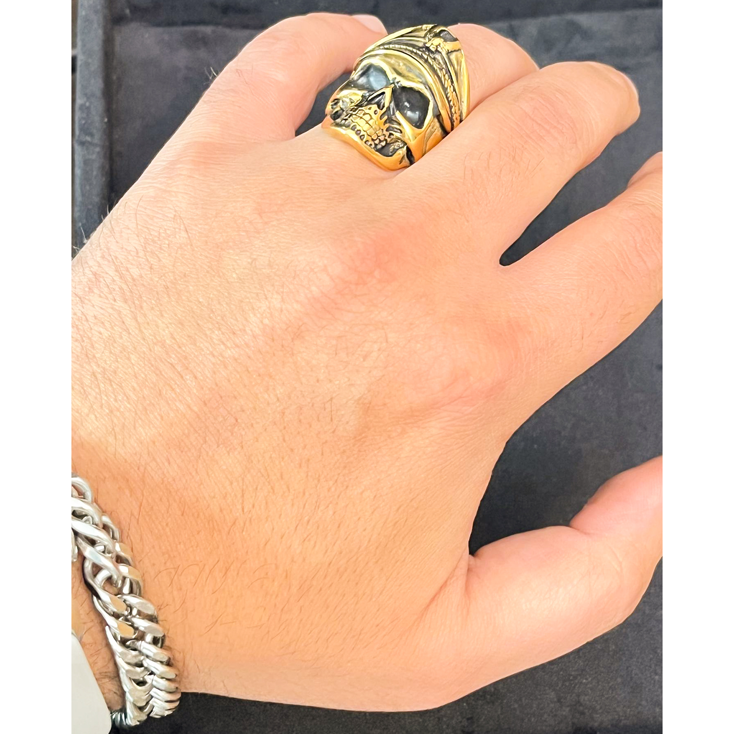 این محصول برای آن دسته از آقایانی مناسب است که به دنبال استایل منحصربهفرد، جسور و هنری هستند. انگشتر اسکلت برنجی میتواند انتخابی عالی برای ست کردن با لباسهای اسپرت، استریت یا حتی موتورسواری و رویدادهای خاص باشد. طرح جمجمه و کلاه نمادی از روح آزاد، جسارت و فرماندهی است و برند گالری عزیزی با استفاده از متریال برنج اصل، حس اصالت و دوام را کاملاً حفظ کرده است.