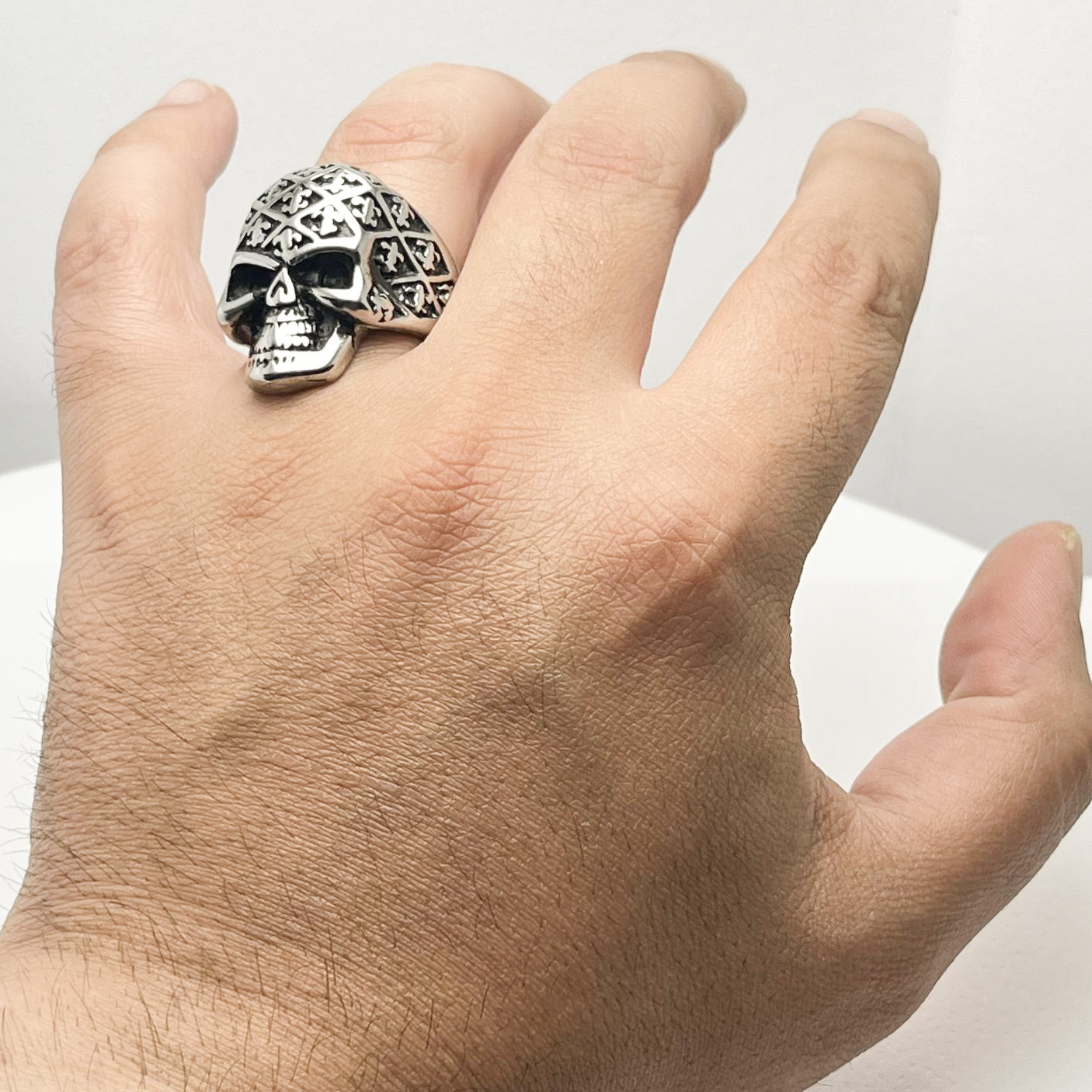 <meta name="title" content="انگشتر مردانه استیل نقرهای طرح اسکلت | گالری عزیزی">