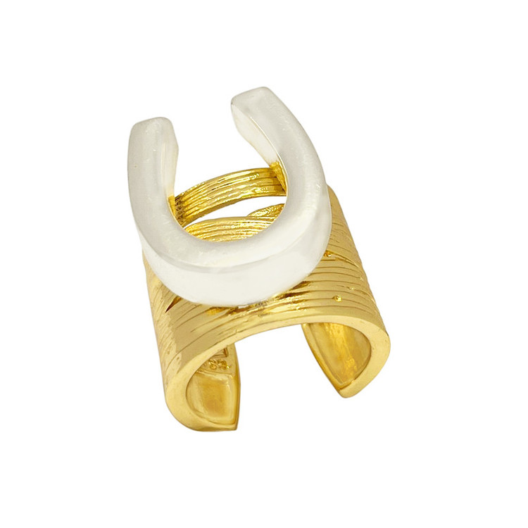 انگشتر زنانه مدل نعل بزرگ انگشتری بسیار خاص و یونیک است که از ترکیب استیل و استیل آبکاری طلا ساخته شده است . بهترین ویژگی این انگشتر ساختار انگشترهای نعل موجود در بازار عوض کرده و یک کار خاص جواهری ساخته است .