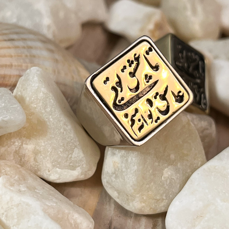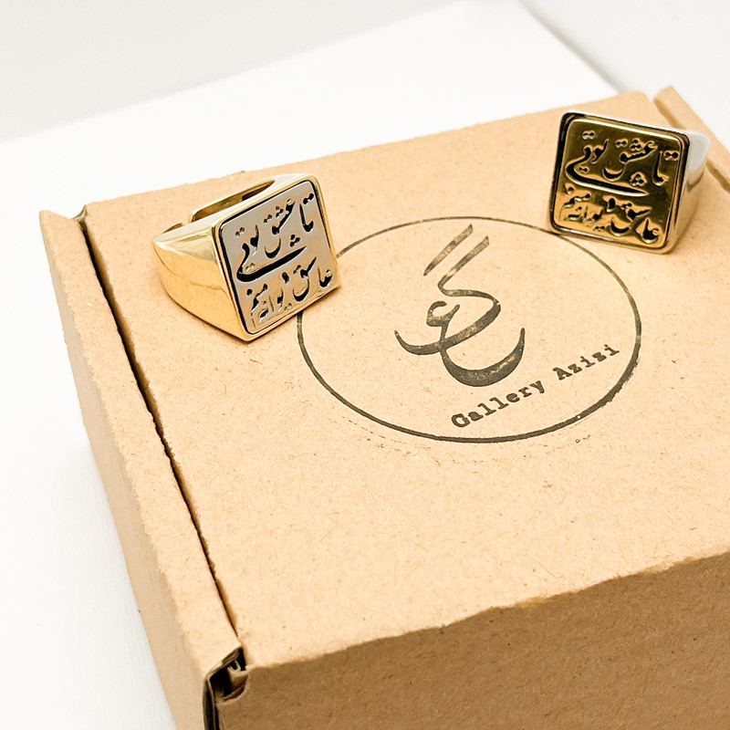 انگشتر زنانه برنجی گالری عزیزی مدل شعر { تا عشق تویی عاشق دیوانه منم )