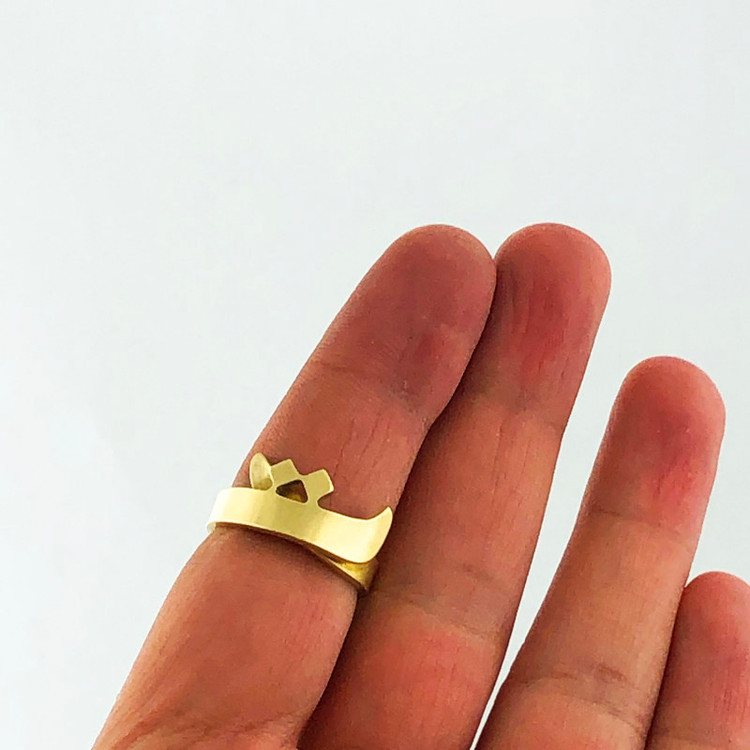 انگشتر حرف ت گالری عزیزی از جنس برنج خالص میباشد و تماما دستساز و با هنر اره کاری با ظرافت ساخته شده است . این انگشتر میتواند نشانی از هویت نام ما و کسانی که برای ما مهم هستند باشد و با طراحی ساده و ظریف که دارد قابل ست کردن با تمام تیپ و استایل ها است . این انگشتر با هنر دست و اره کاری ساخته شده و هیچگونه کار و برشی توسط لیزر انجام نگرفته است و منحصر به فردی انگشتر هم ظرافت بالای هنر اره کاری است