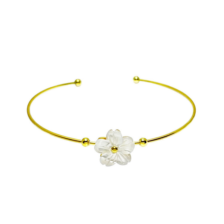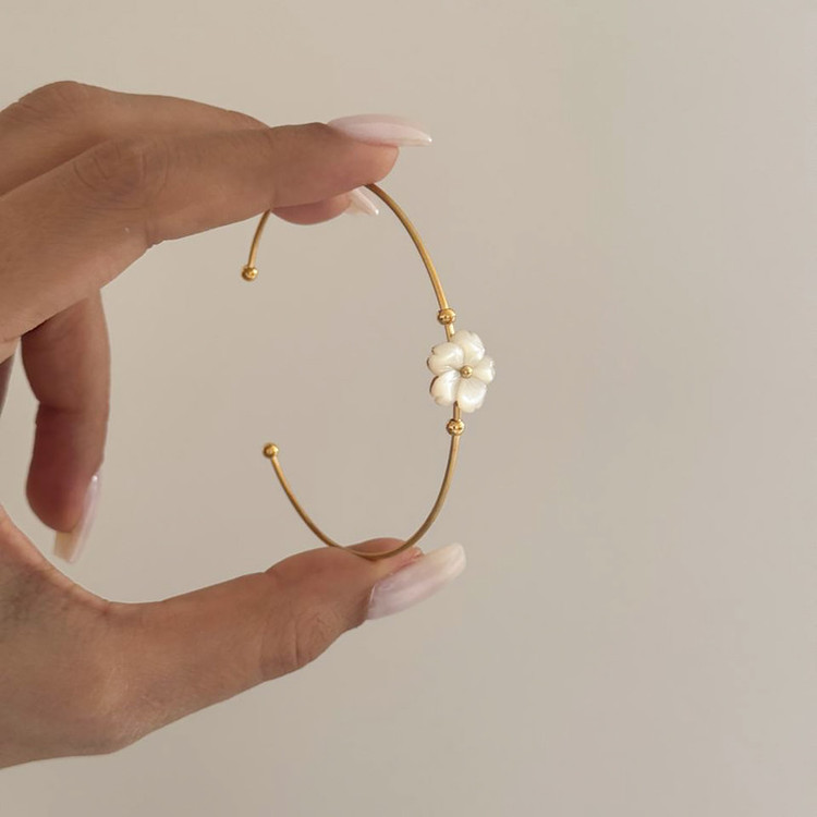 بنگل زنانه استیل گالری عزیزی مدل گل سفید صدف طبیعی