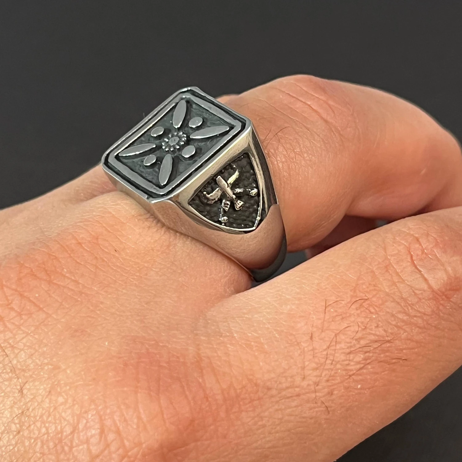 انگشتر مردانه استیل گالری عزیزی مدل درفش کاویانی